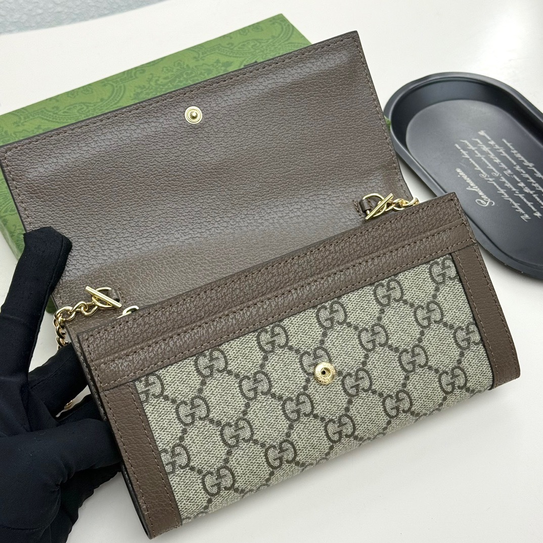 Gucci Ophidia Chain Wallet Beige / 7.5 x 4.1 x 1.4 inches / Gold toned hardware / Chain Wallet / Daily Bags