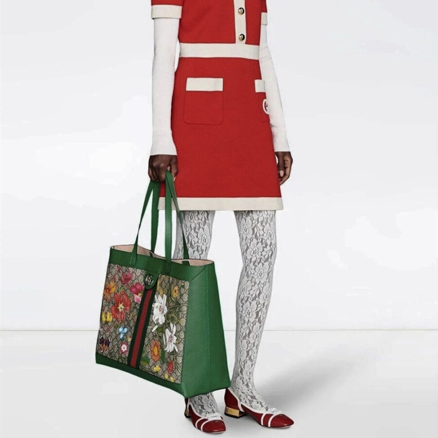 1:1 Replica Bag – Gucci Ophidia GG Flora Medium Tote Bag Dark Green 44Cm 547947 HWHAE 8709