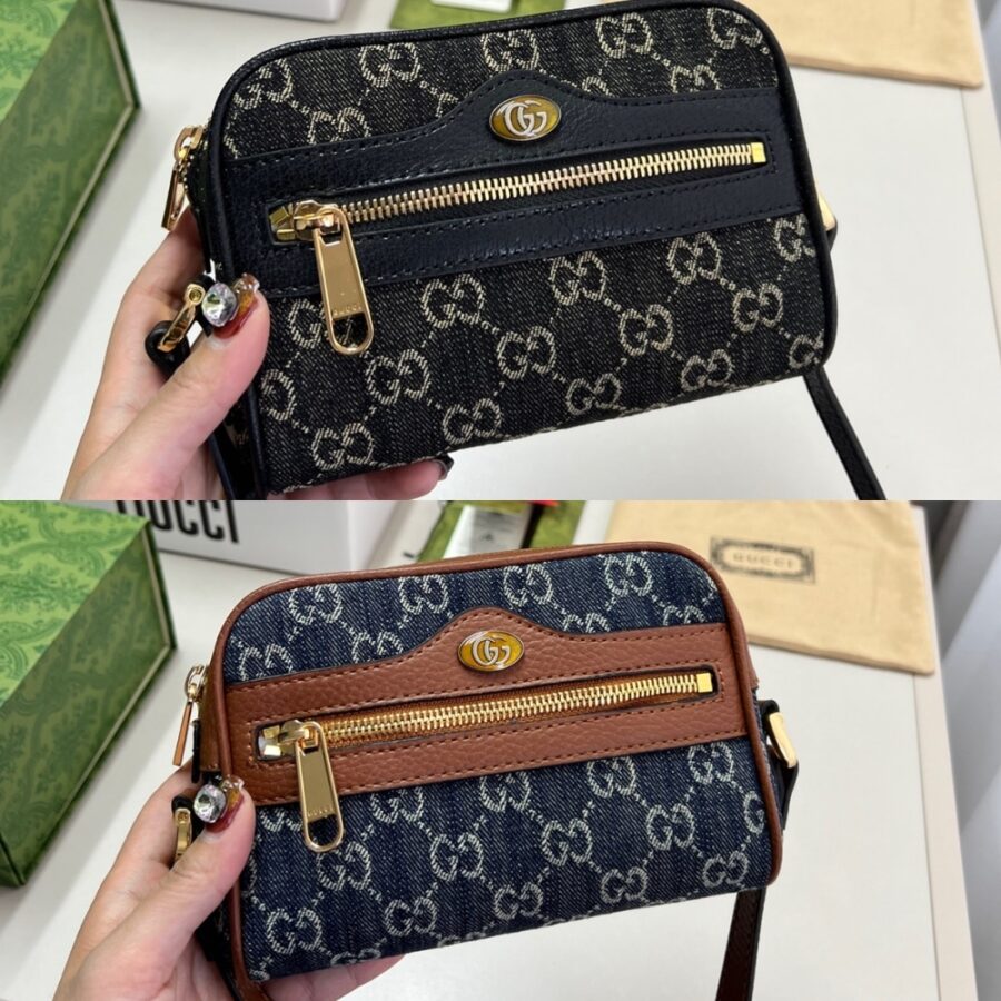 Gucci Ophidia Shoulder Bag GG Denim Mini Black 17Cm