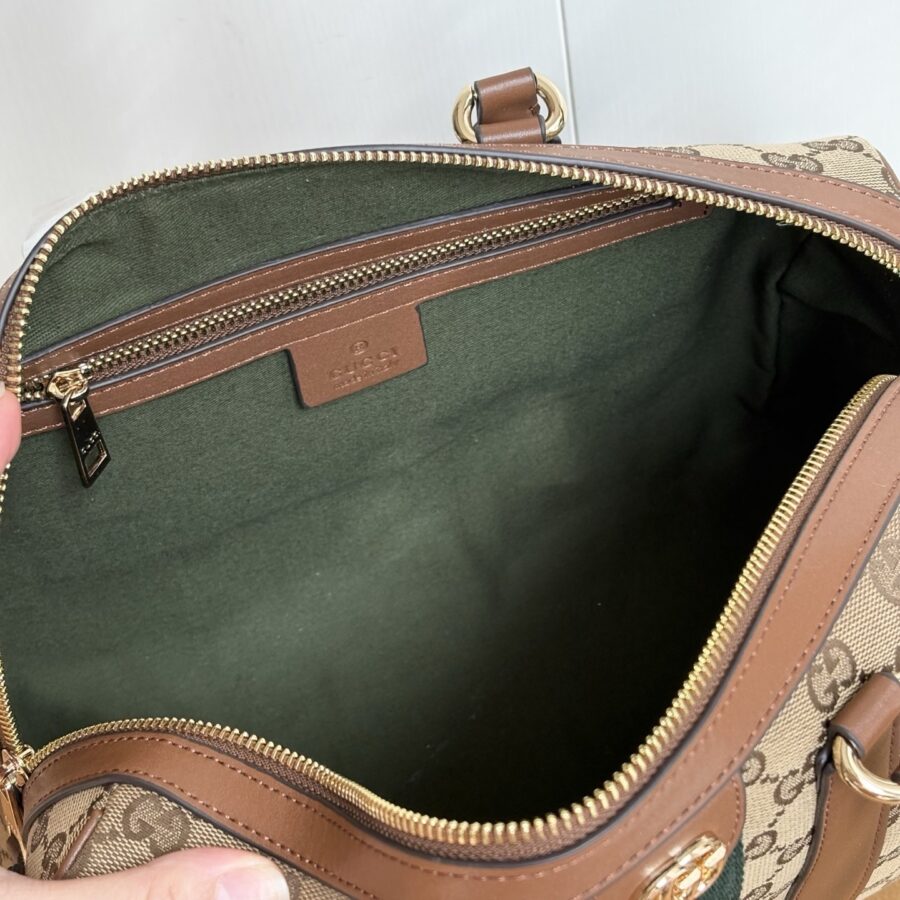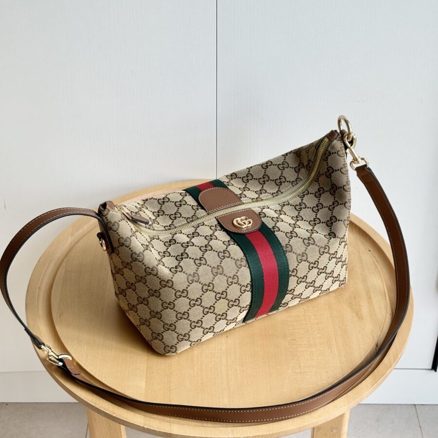 Gucci Vanity transforms inspirations from the classic beauty case into a striking silhouette that can be worn in three different ways. This bag can be carried over the shoulder, or as a top handle with the strap doubled up. It also can be styled as a crossbody bag with an additional strap.