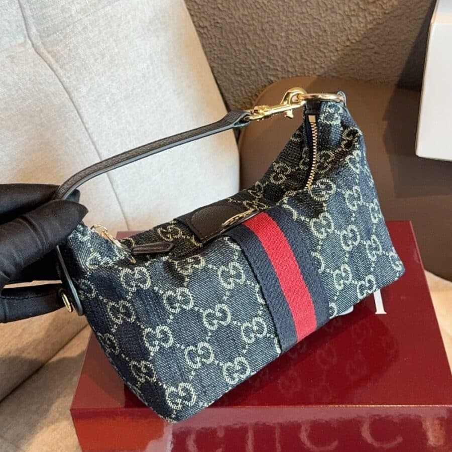 Gucci Vanity Mini Bag / Blue And White / Denim / 7.5 x 3.5 x 4.3 inches / Fits smartphone, card case, and lipstick / Elegant style