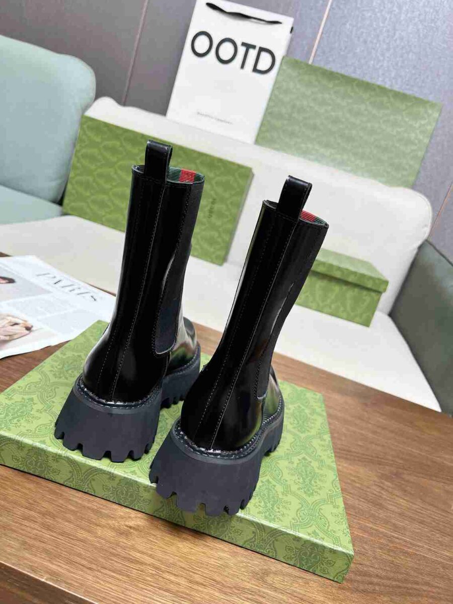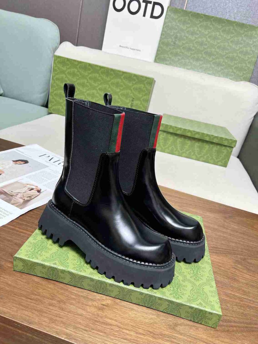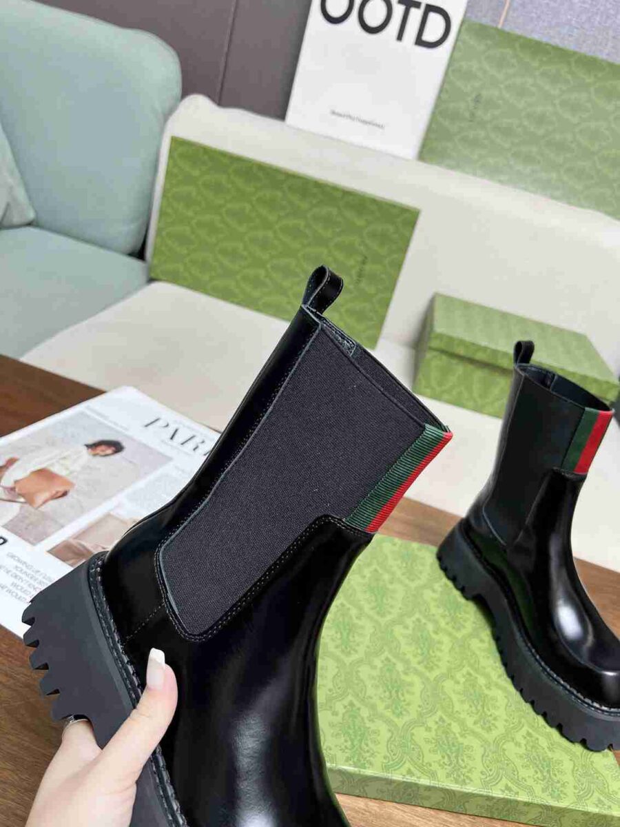GUCCI WOMEN’S BOOT WITH WEB ANAND LEATHER BLACK ‎806398 AAD6T 1052