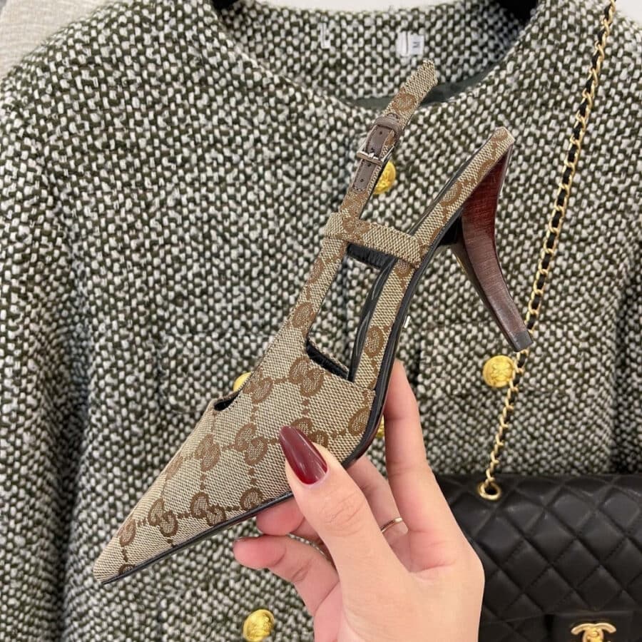 1:1 Replica Shoes – Gucci Women’s GG Slingback Pump Beige 675420 KY980 9763