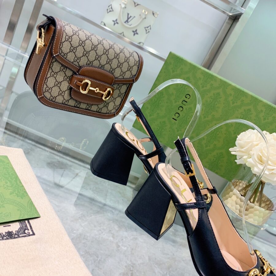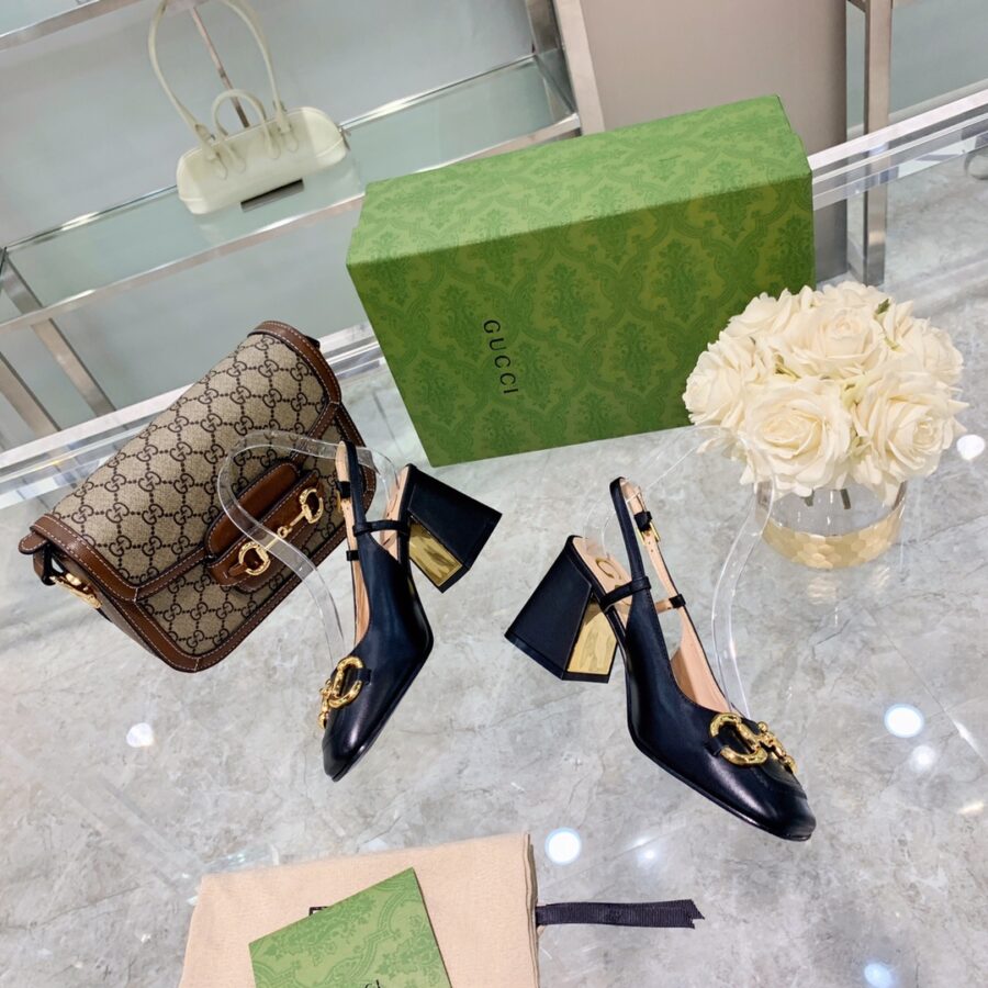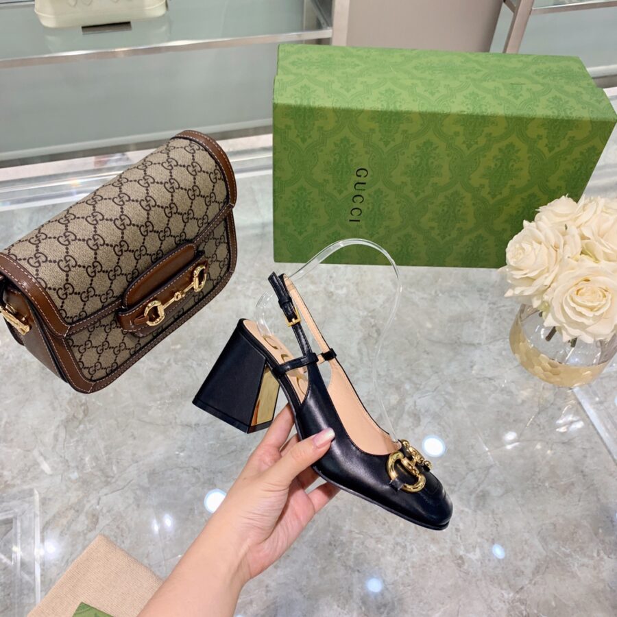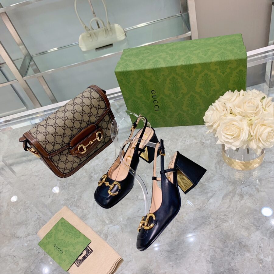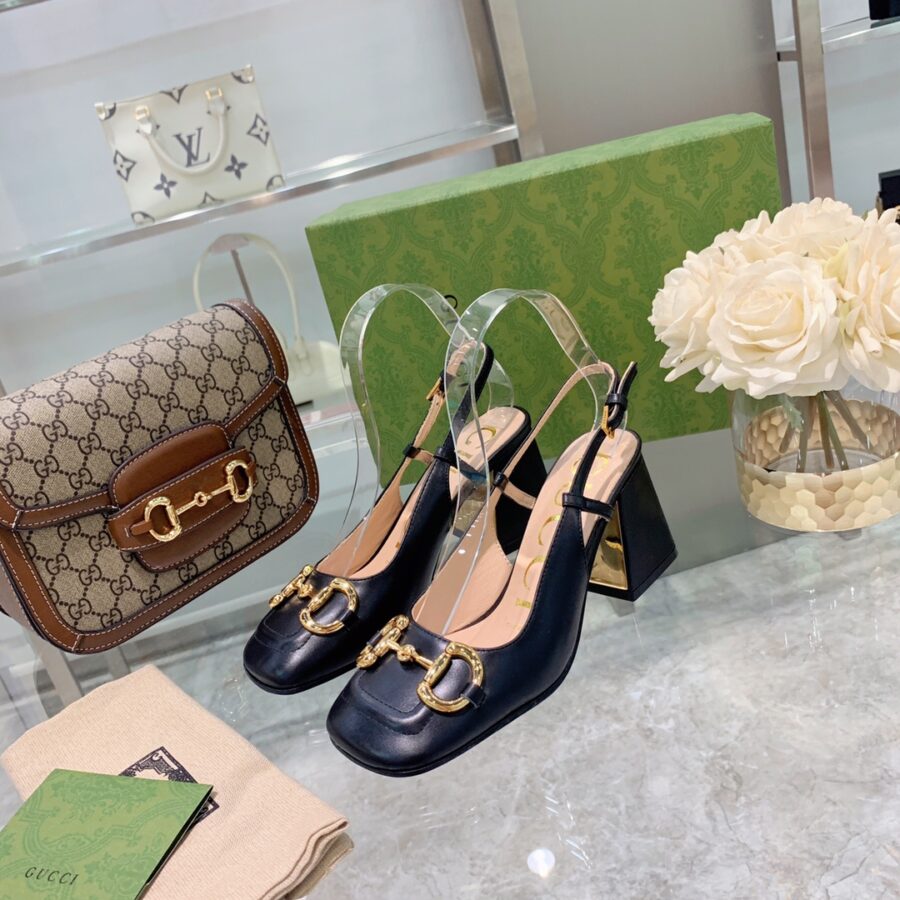 GUCCI WOMEN’S MID HEEL SLINGBACK WITH HORSEBIT BLACK ‎643892 C9D00 1000