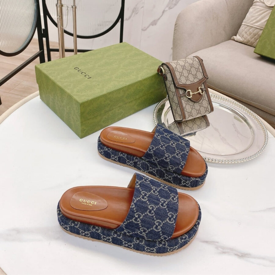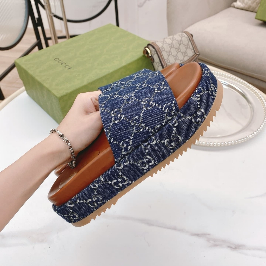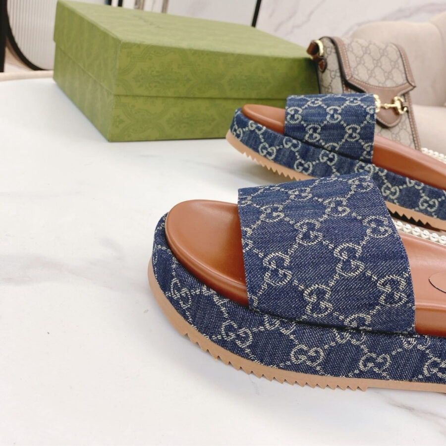 1:1 Replica Shoes – Gucci Women’s Platform Slide Sandal GG Denim Blue 623212 2KQ00 4402