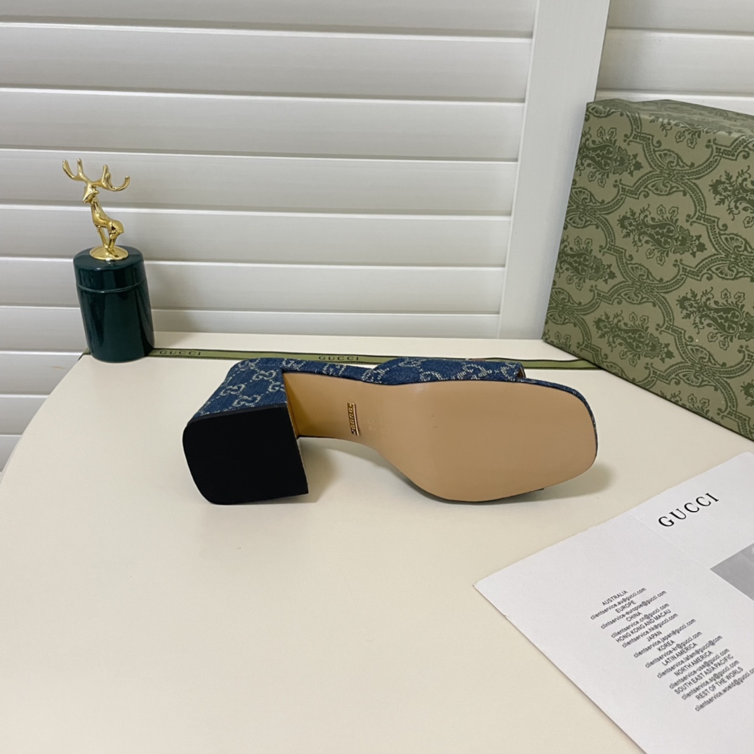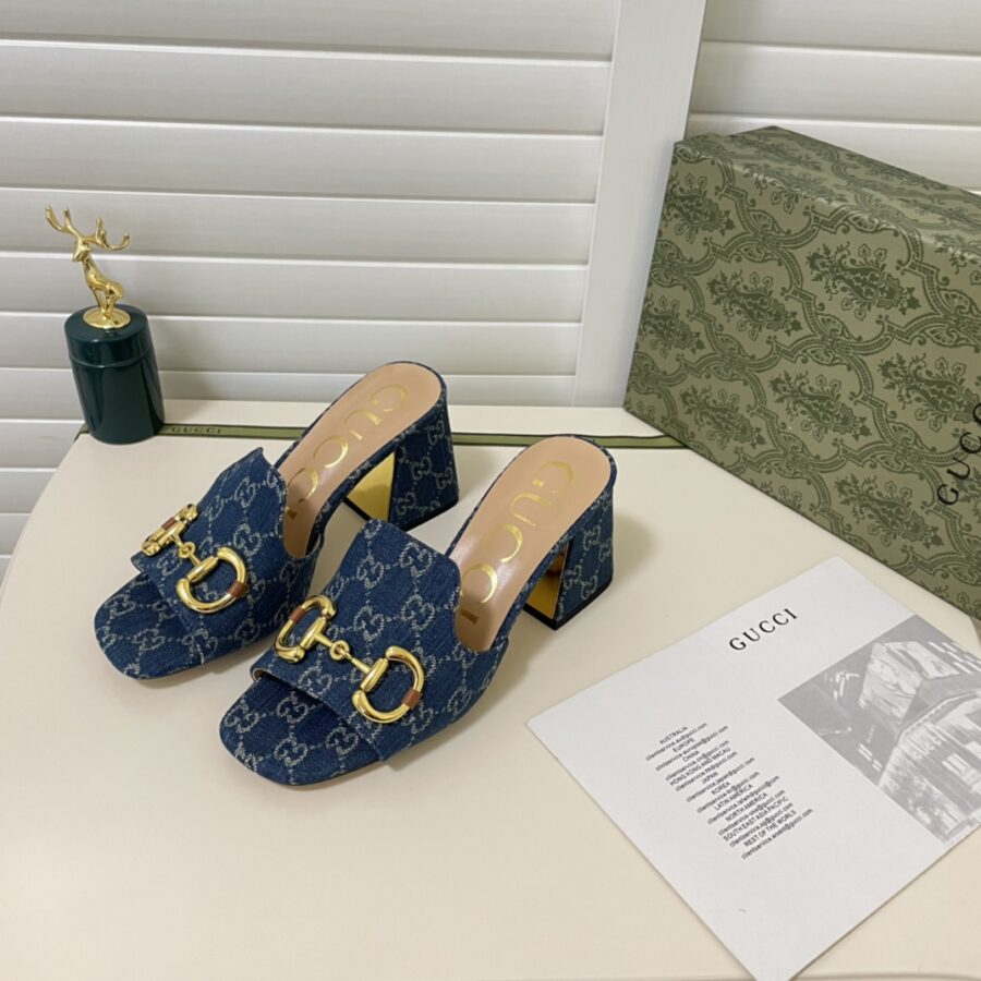 GUCCI WOMEN’S SLIDE MONOGRAM SANDAL WITH HORSEBIT BLUE