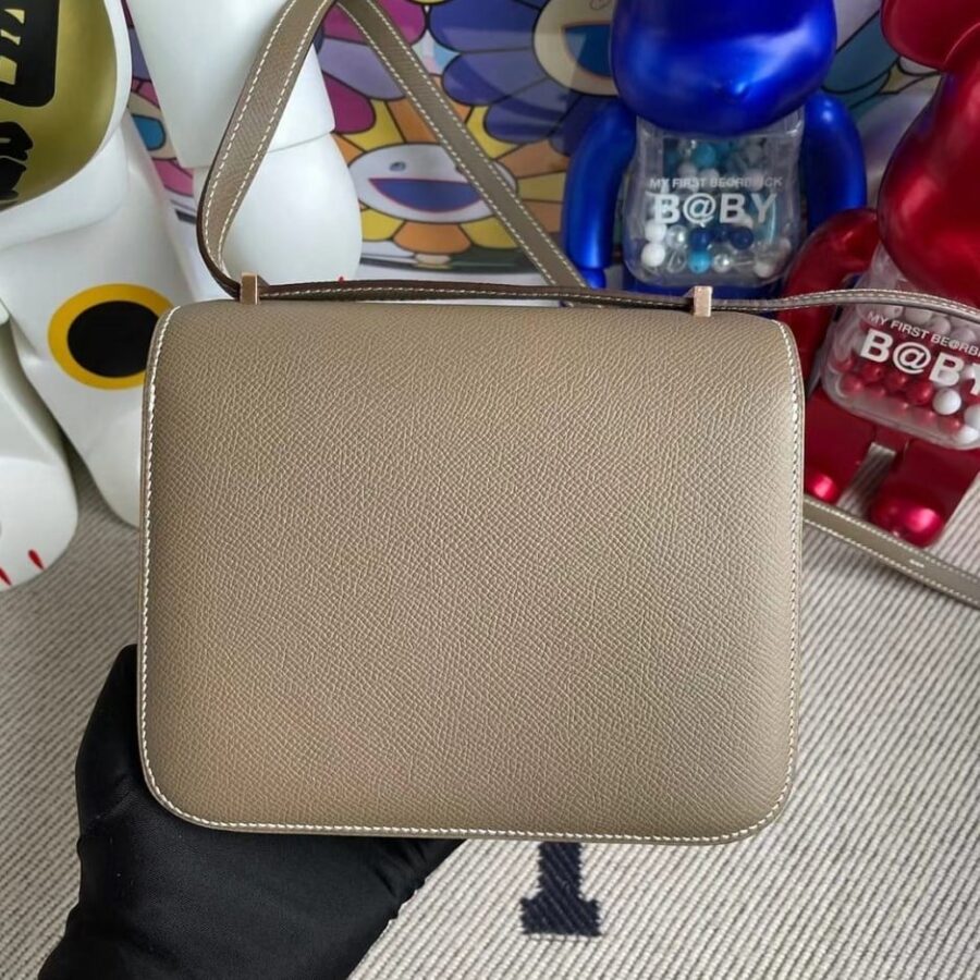 HERMES CONSTANCE EPSOM CK18 ETOUPE ROSE GOLD HARDWARE 18CM