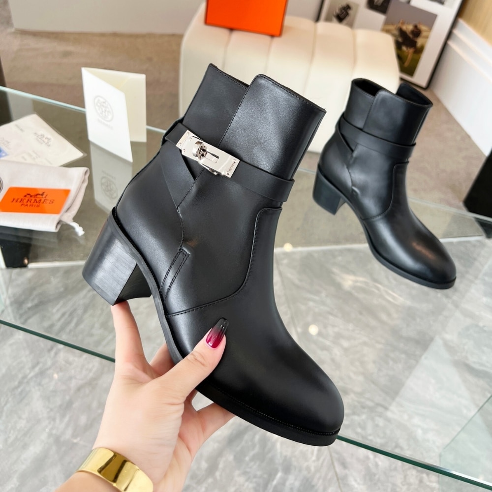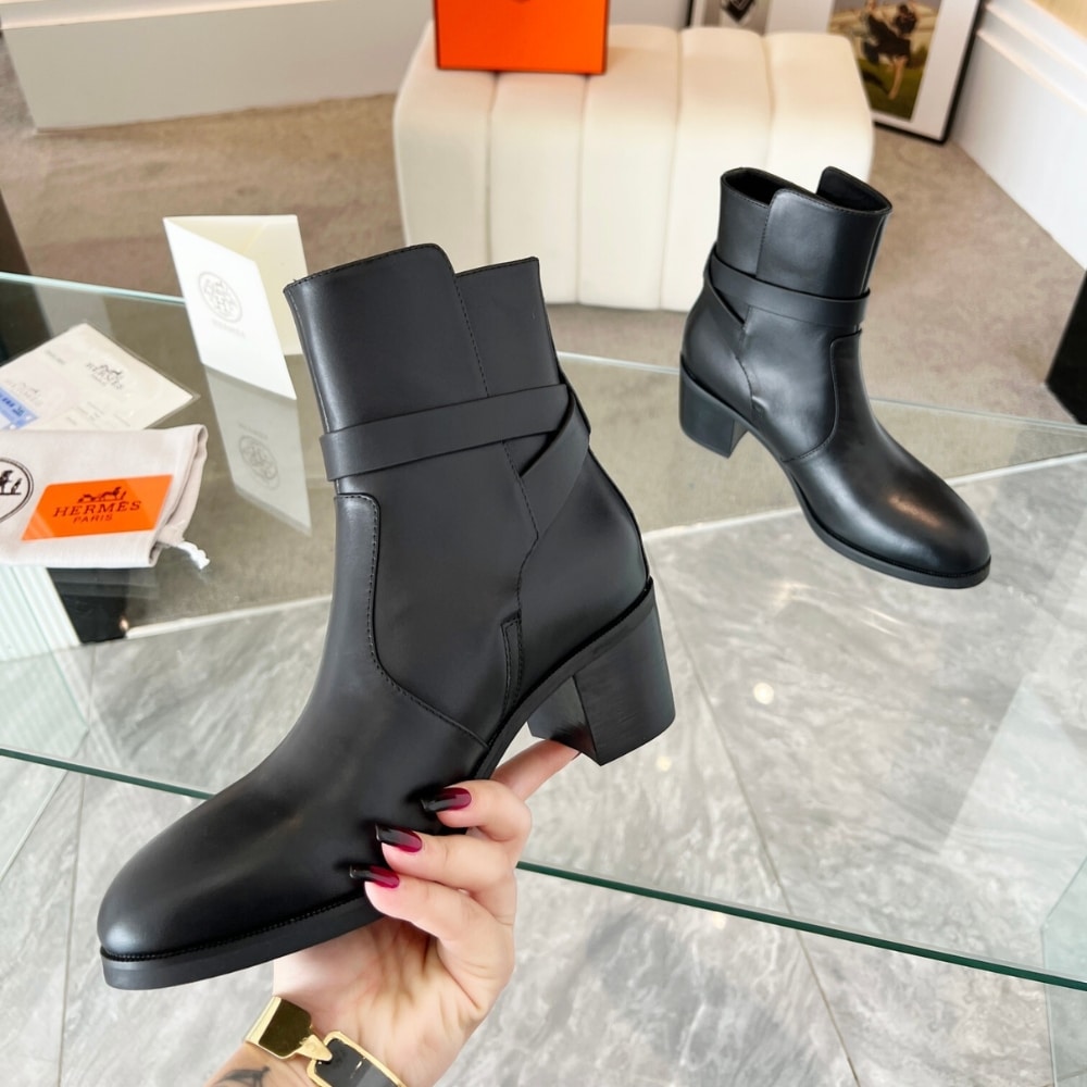 - Black leather heel