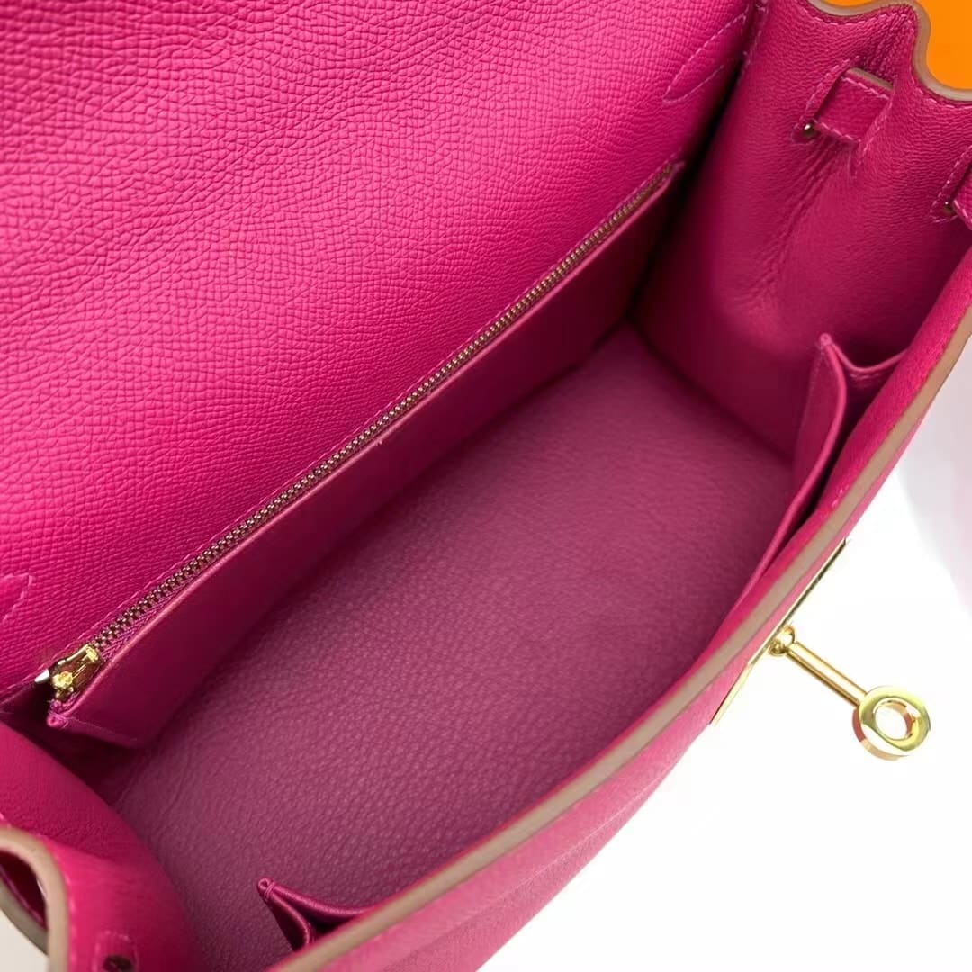 Hermes Kelly 25 Epsom Dark Pink Gold Hardware 25Cm