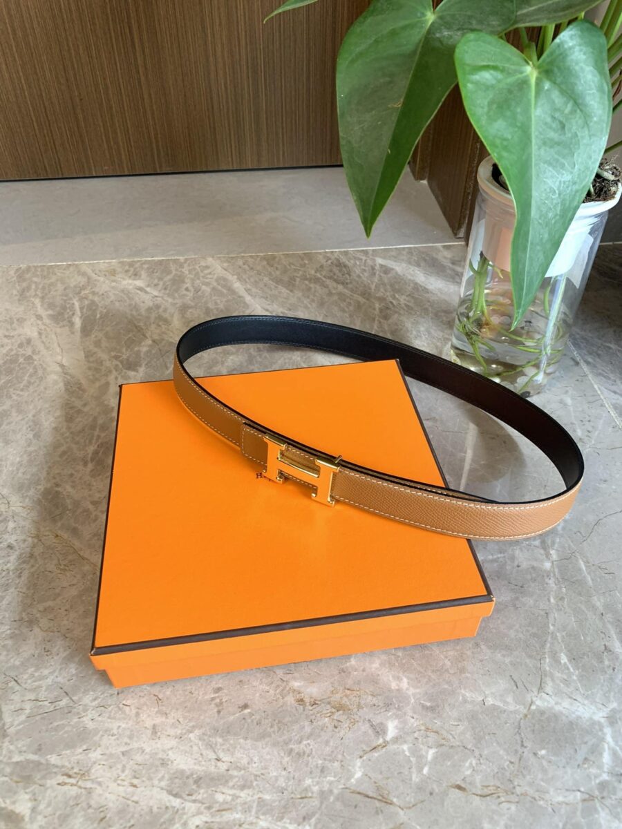 HERMES MINI H BELT BUCKET AND REVERSIBLE LEATHER STRAP BLACK BROWN 24MM H079645CC06