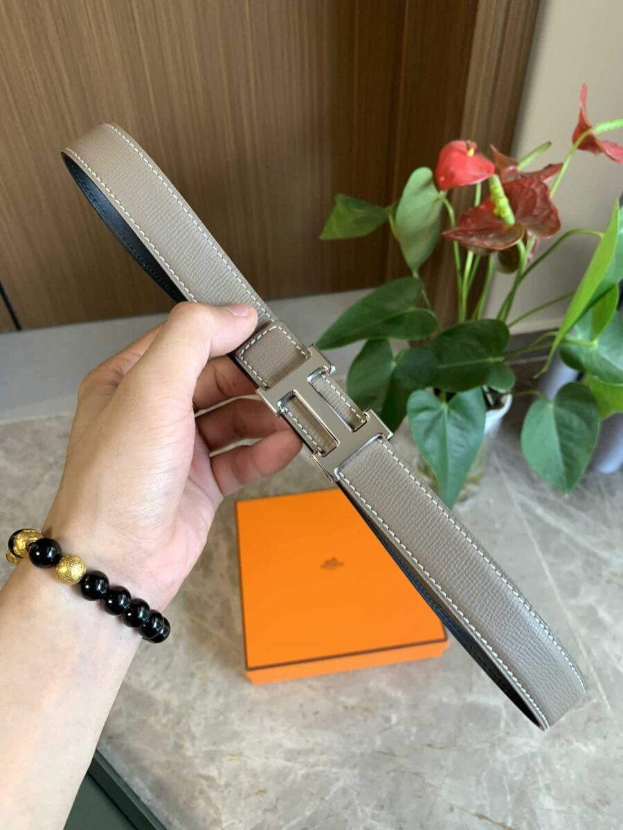 HERMES MINI H BELT BUCKLE AND REVERSIBLE LEATHER STRAP SILVER GREY 24MM H079645CK05