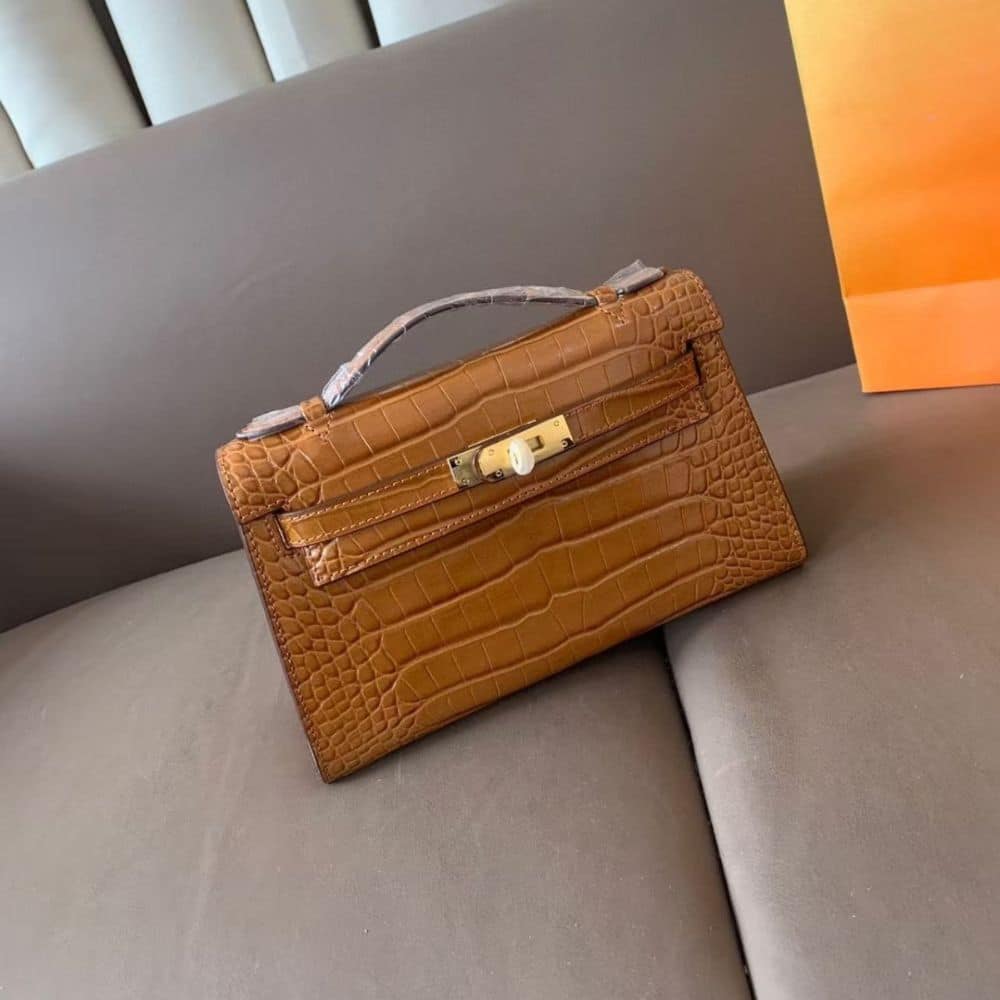 1:1 Replica Bag – Hermès Mini Kelly 20 Alligatore Gold Hardware Brown 22cm