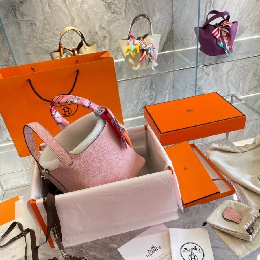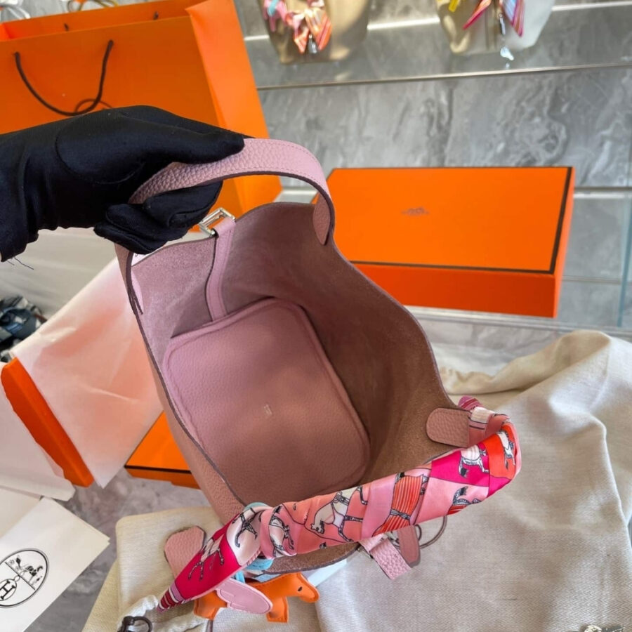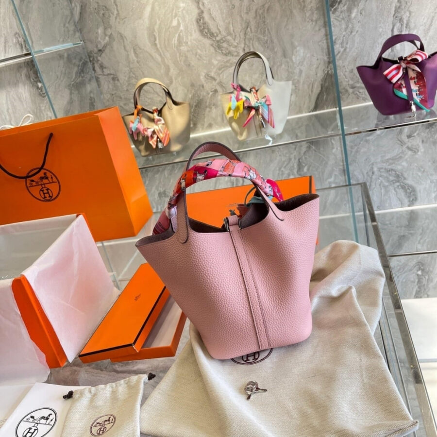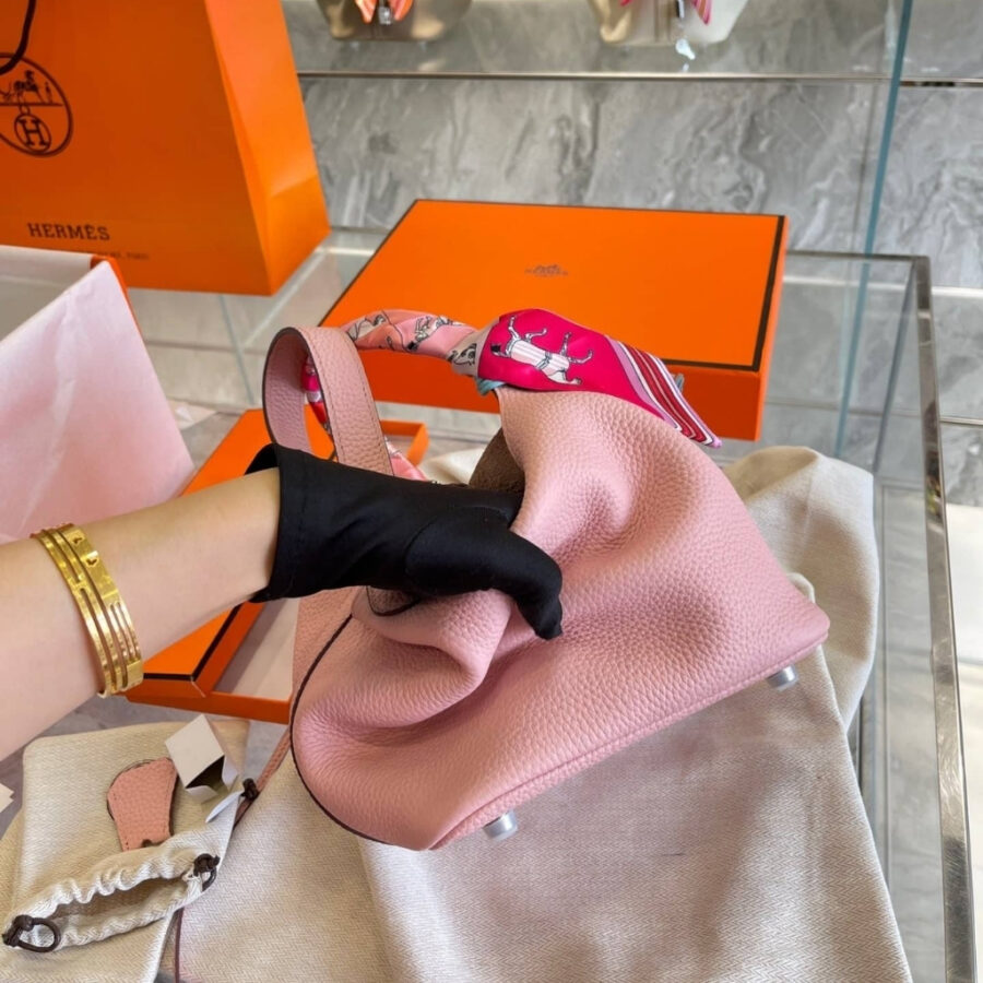 1:1 Replica Bags – Hermes Picotin 18 Clemence Silver Hardware Rose Sakura 18Cm