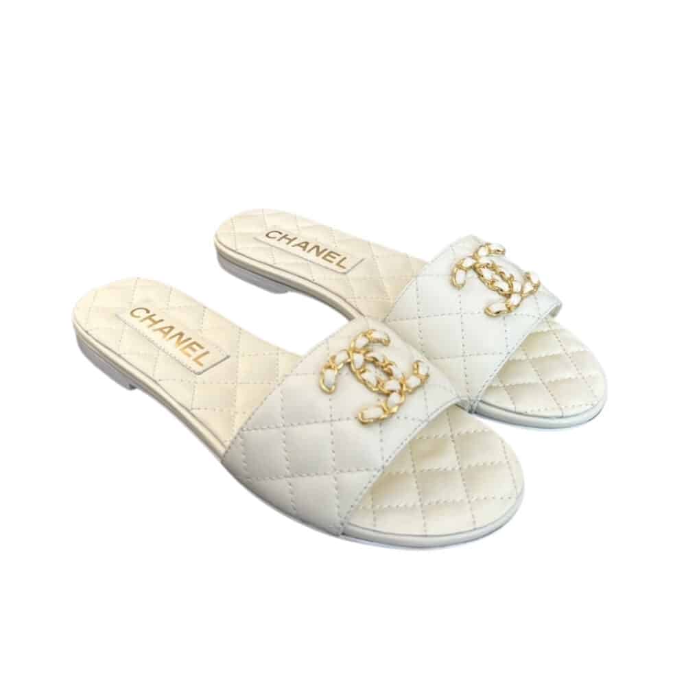 3. Chanel 23P Chain CC Slide Mules Quilted Leather White – 39 EU- 8 US