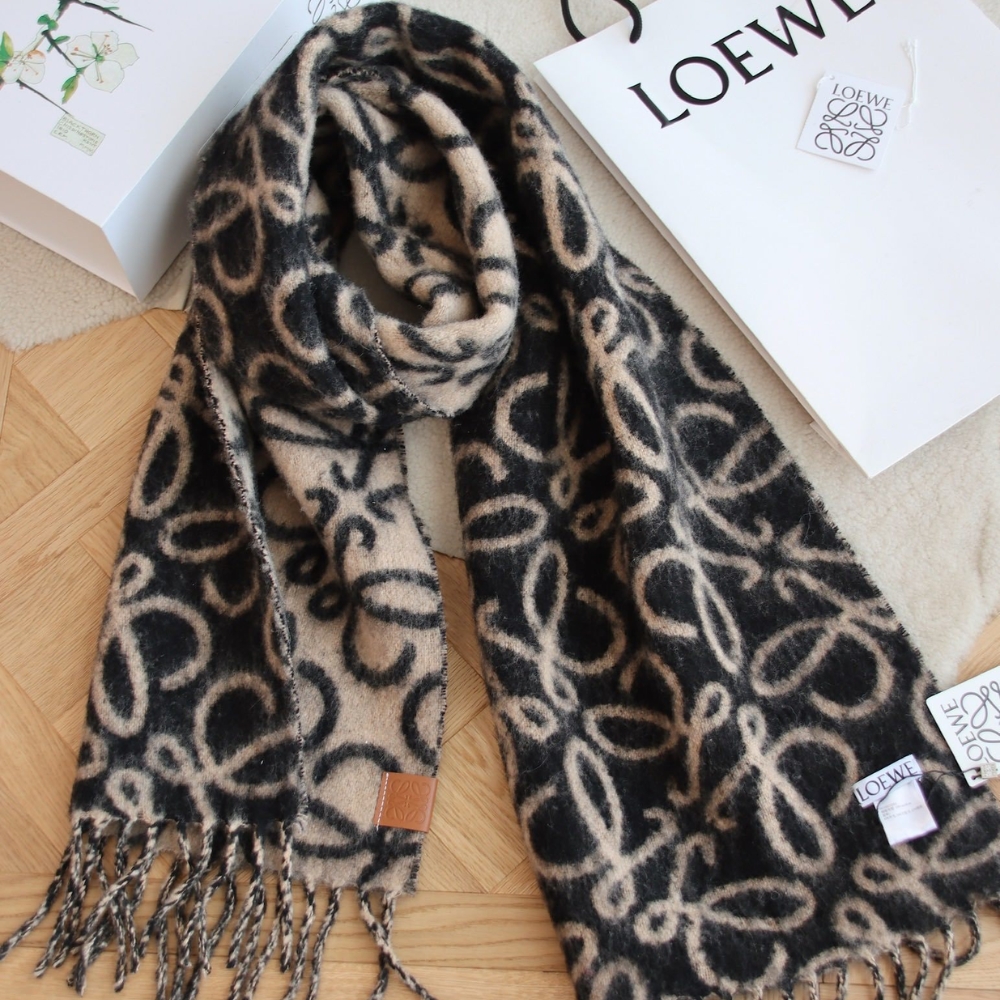LOEWE ANAGRAM WOOL SCARF BLACK