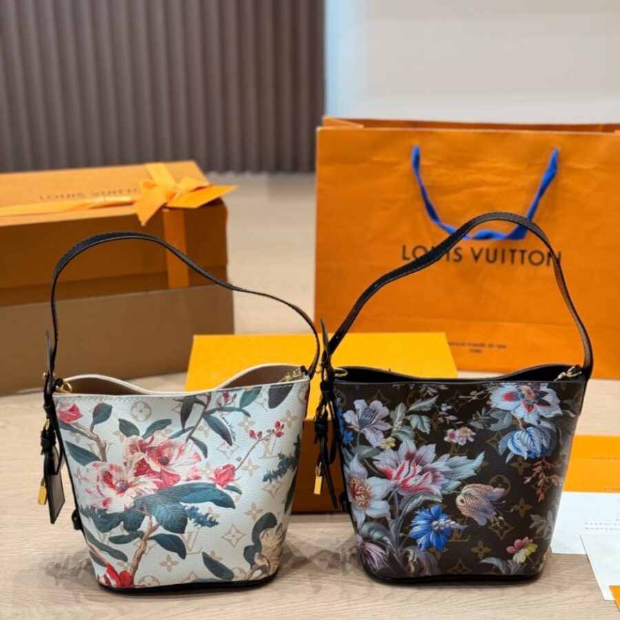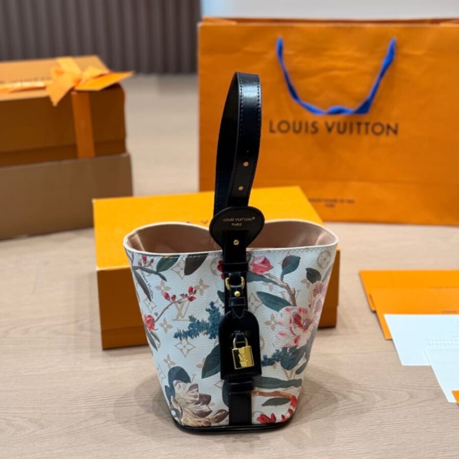 A reinterpretation of the Monogram Eden collection, the All In BB bag makes its mark with Monogram Dune Canvas adorned with vibrant floral patterns. The classic bucket silhouette is trimmed in leather and accented with details such as a gold-tone lock and the signature LV name tag. Inside, there’s a detachable zippered pouch and enough space to hold a phone, wallet, and keys.