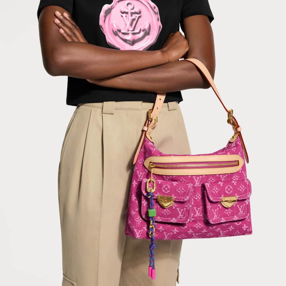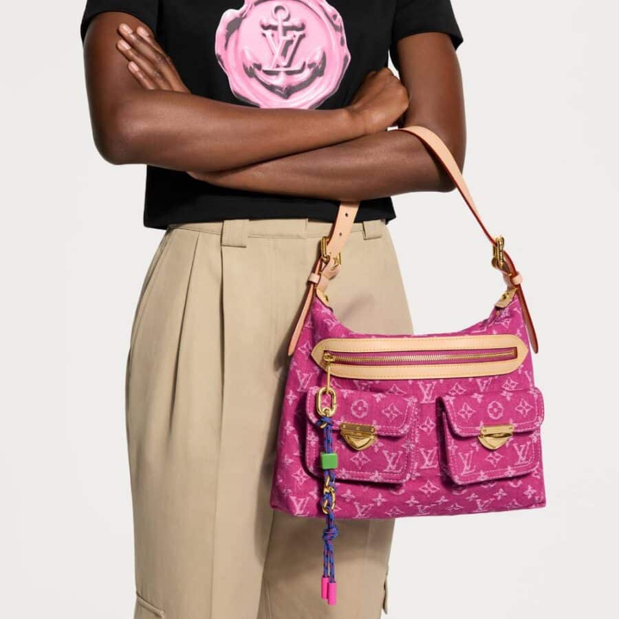 Louis Vuitton Baggy / Fuchsia Denim / 11.8 x 8.7 x 5.1 inches / Gold-toned hardware / Fits smartphone, earphones, Zippy Wallet, keys, lipstick / Elegant Style / For Women