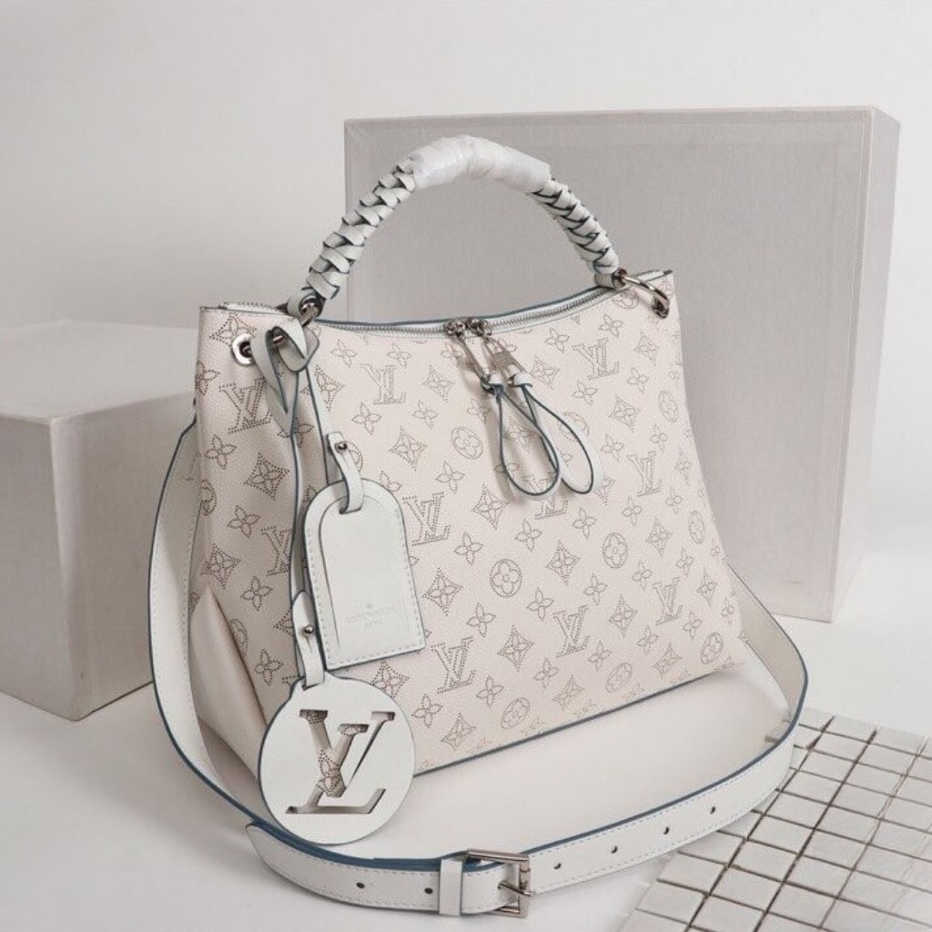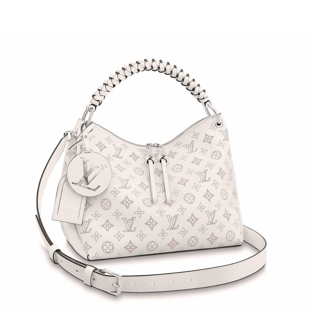Louis Vuitton Beaubourg Hobo MM / Mahina Leather / Cream White / 32 x 26 x 17 cm / 12.6 x 10.2 x 6.7 inches / Can use Shoulder or Crossbody Bag / For Women