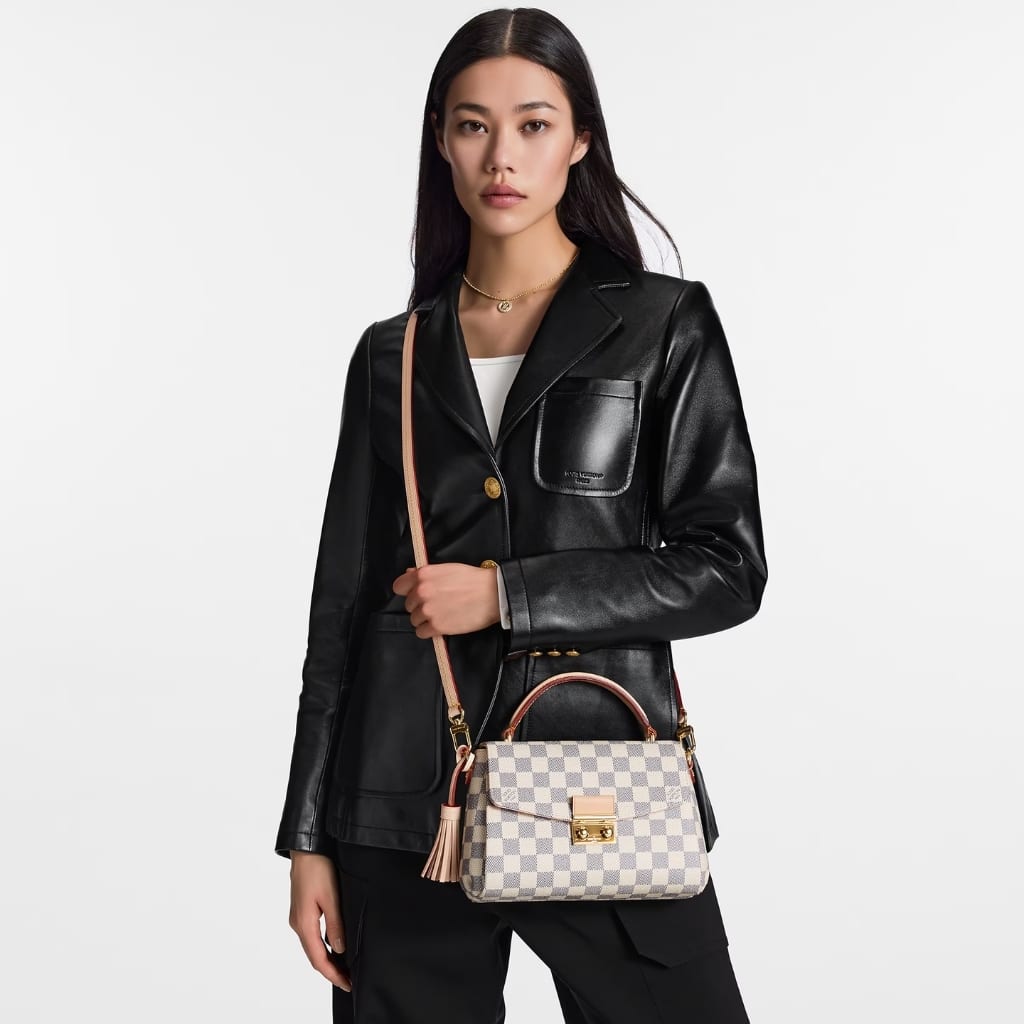 A compact bag with modern lines, the Croisette in summery Damier Azur canvas boasts sophisticated details (note the signature S-lock) and a casual-chic allure. The removable leather tassel adds a touch of fun. Sized to fit the essentials plus a long wallet, this versatile piece can be hand-carried, slung over the shoulder or worn cross-body.