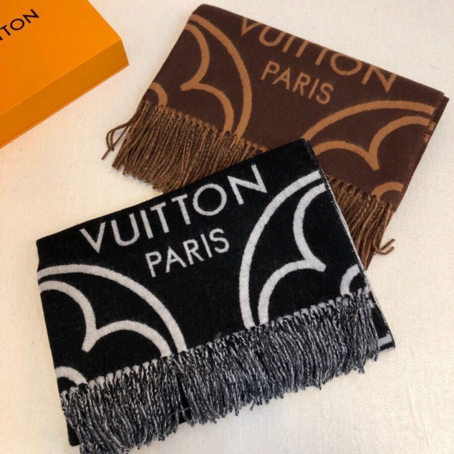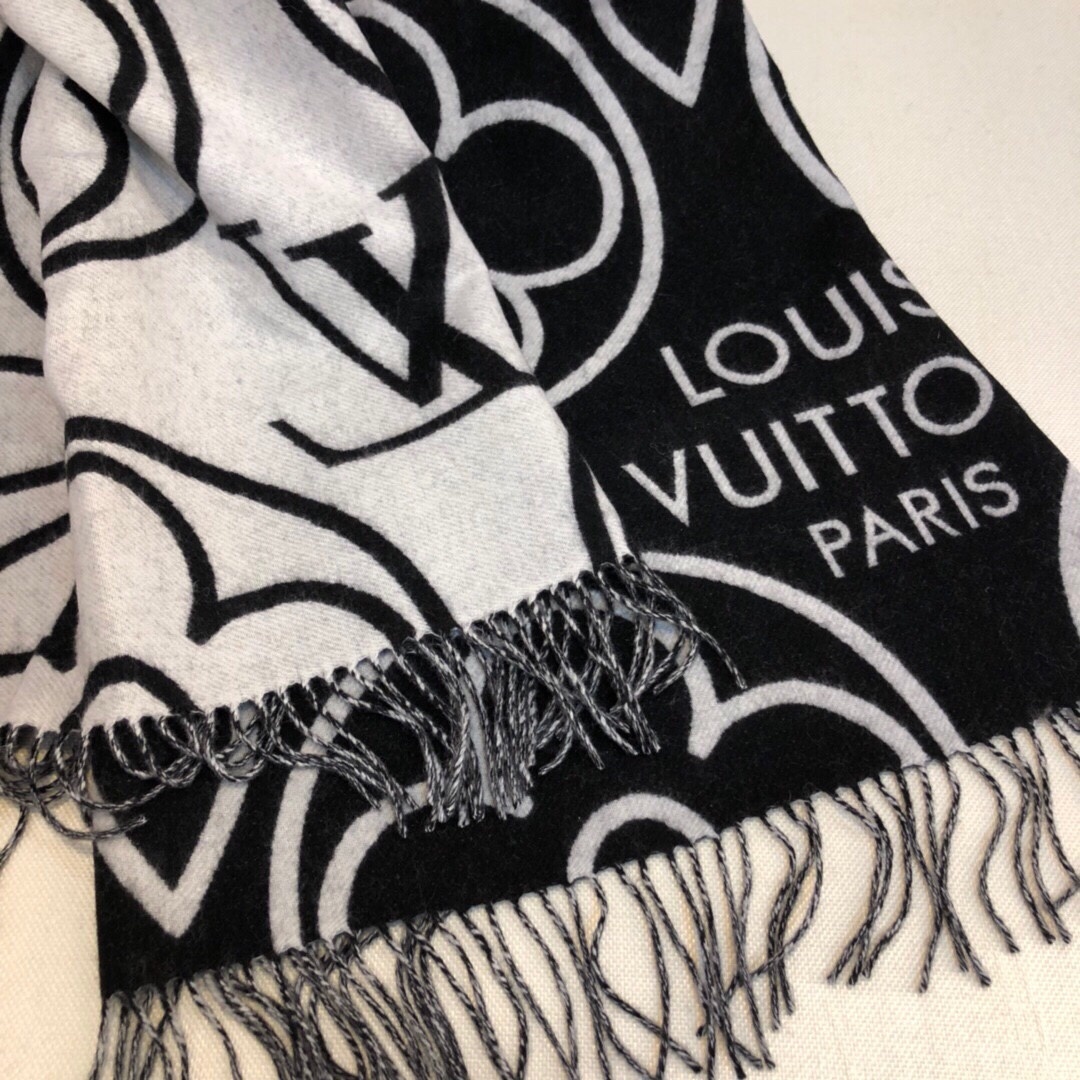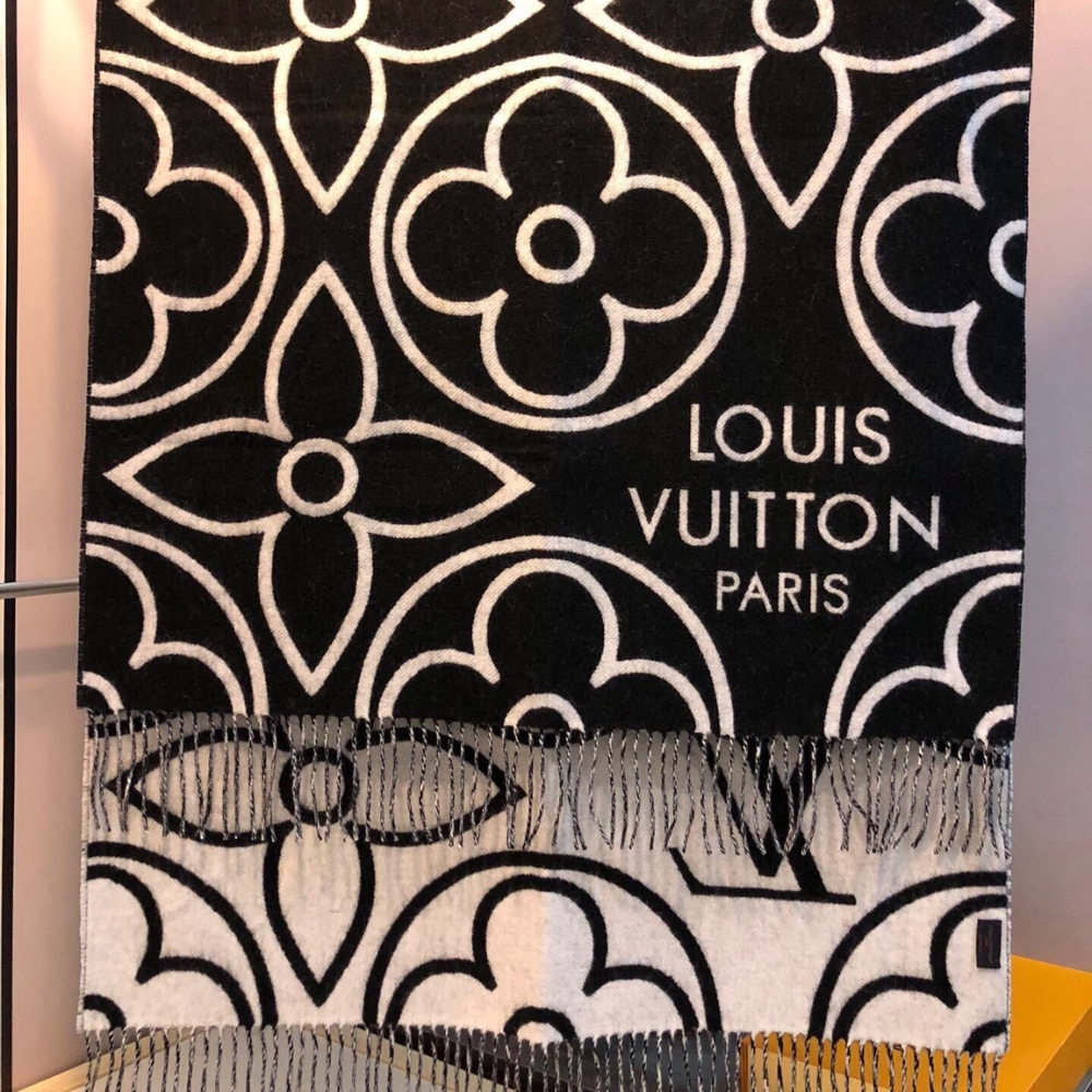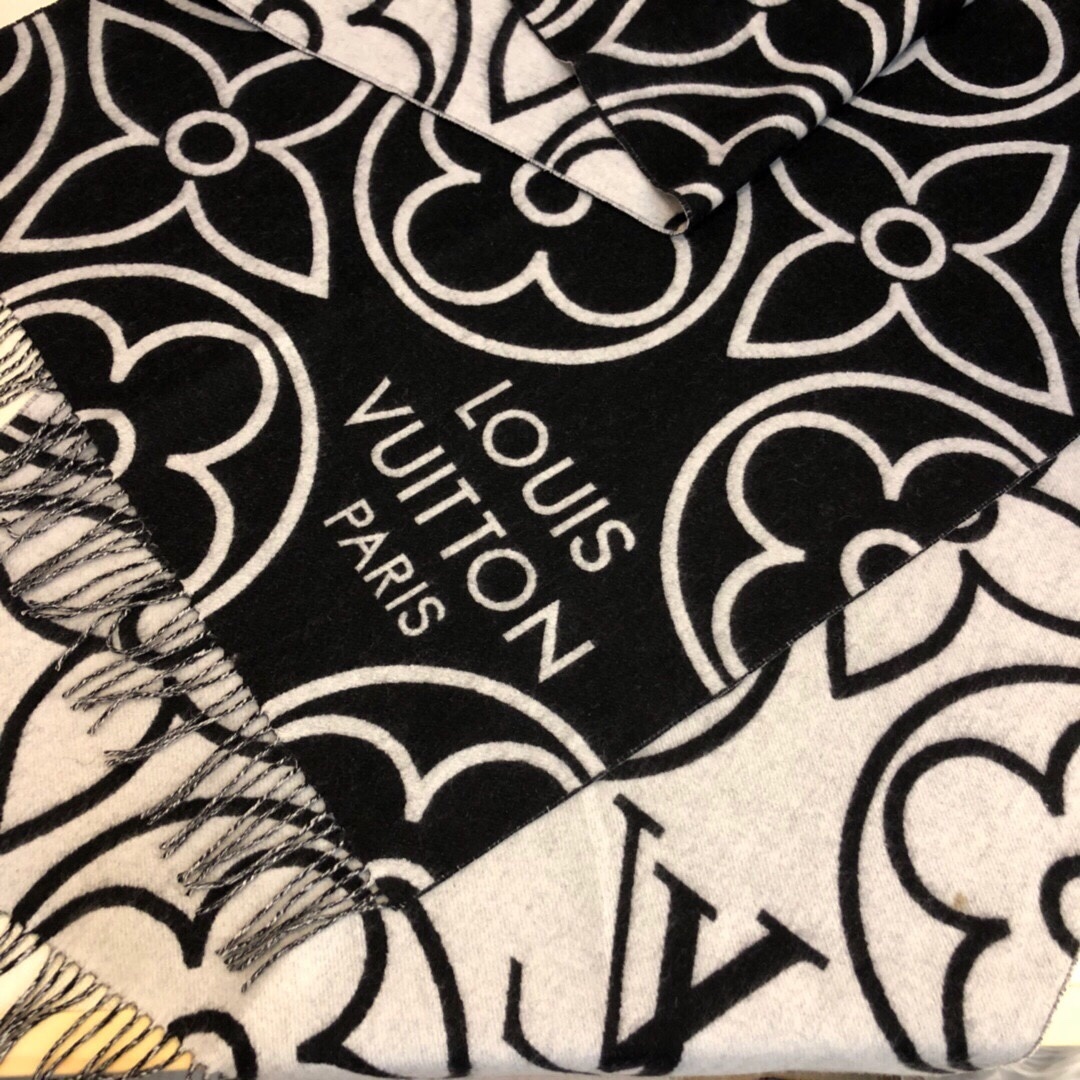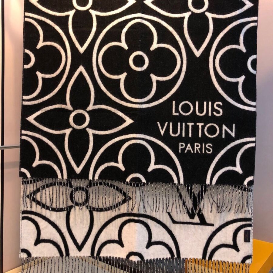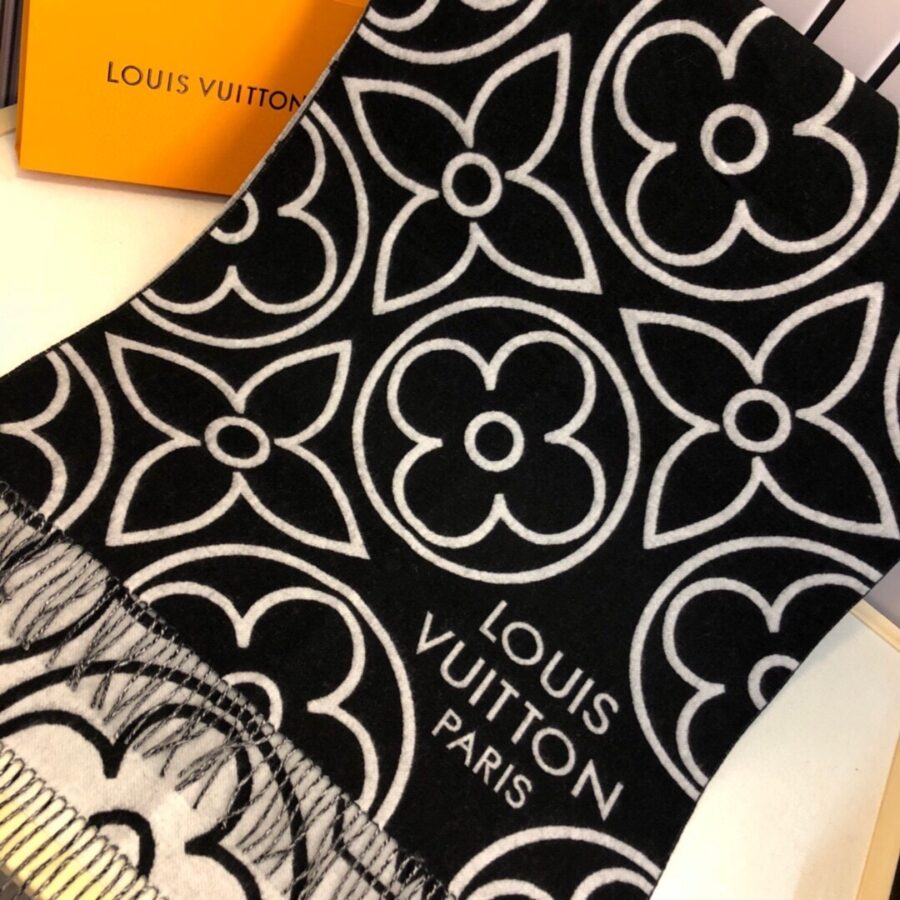 LOUIS VUITTON IN BLOOM CASHMERE SCARF BLACK 180CM