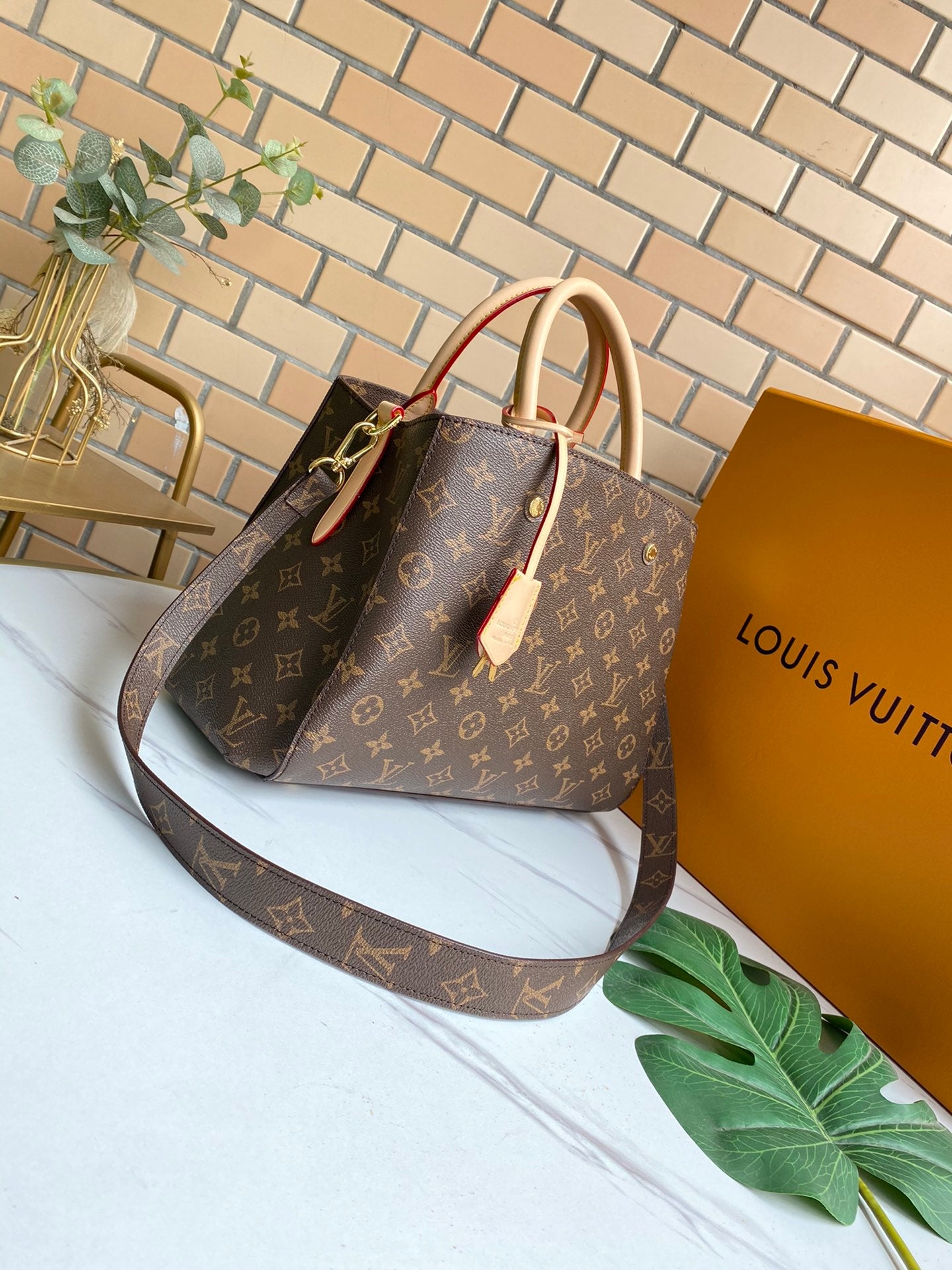 - Gold-color hardware