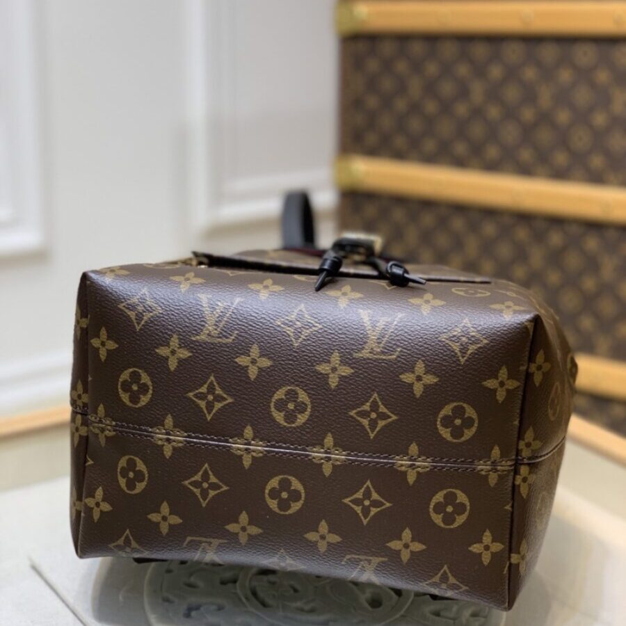 The Louis Vuitton Montsouris PM is a stylish backpack that reimagines a classic 1994 design with modern black leather trim and iconic Monogram canvas. It features a secure magnetic buckle closure and a practical leather drawstring that opens to a spacious interior with an additional open pocket. This compact yet functional accessory is completed with an outside zipped pocket, making it a perfect choice for sophisticated daily use.