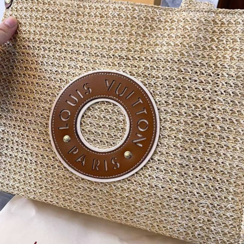 Louis Vuitton Onthego MM Natural Raffia Tan M24723 / 14.8 x 11.8 x 6.7 inches / Summer Style / Picnic Bag for Women