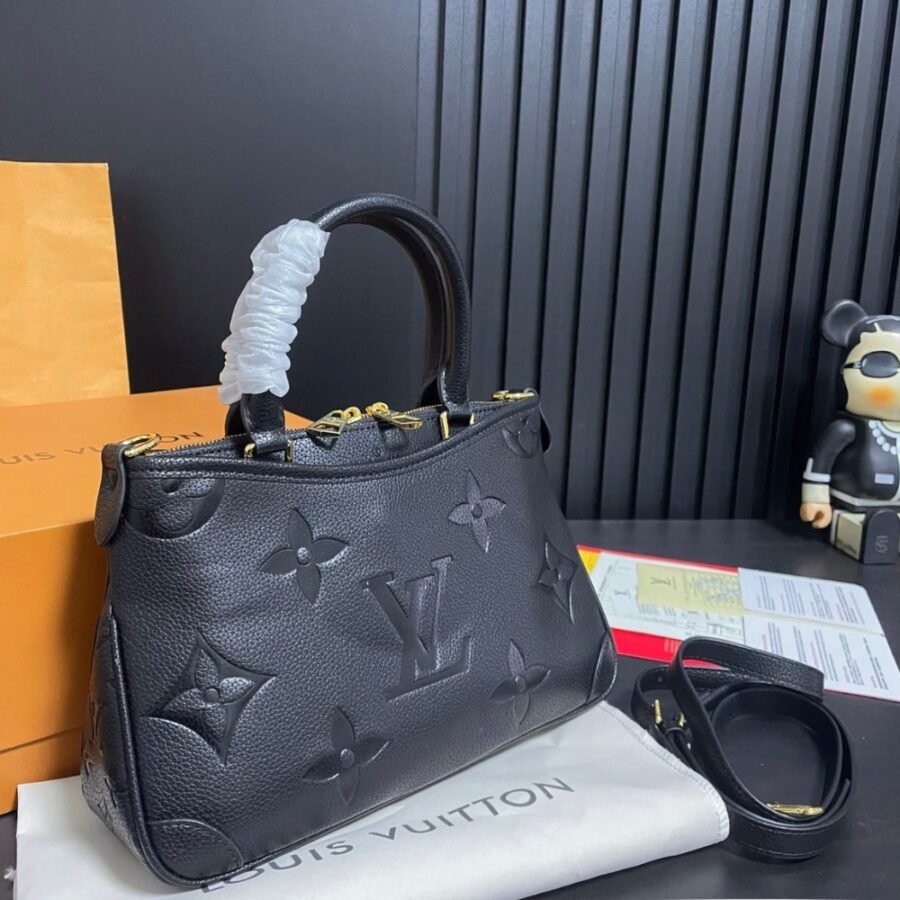 With its more compact format and multiple zipped compartments, this Trianon PM handbag in embossed Monogram Empreinte leather is the perfect alternative to the traditional tote. Its V-cut lines are inspired by the emblematic Louis Vuitton Pallas bag. Two top handles, as well as a detachable shoulder strap, make it comfortable to carry.