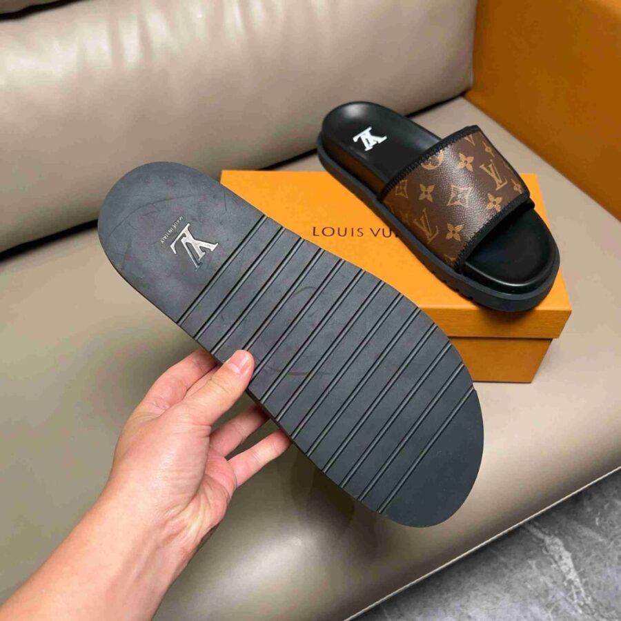 LOUIS VUITTON VELCRO SLIDES MONOGRAM BROWN