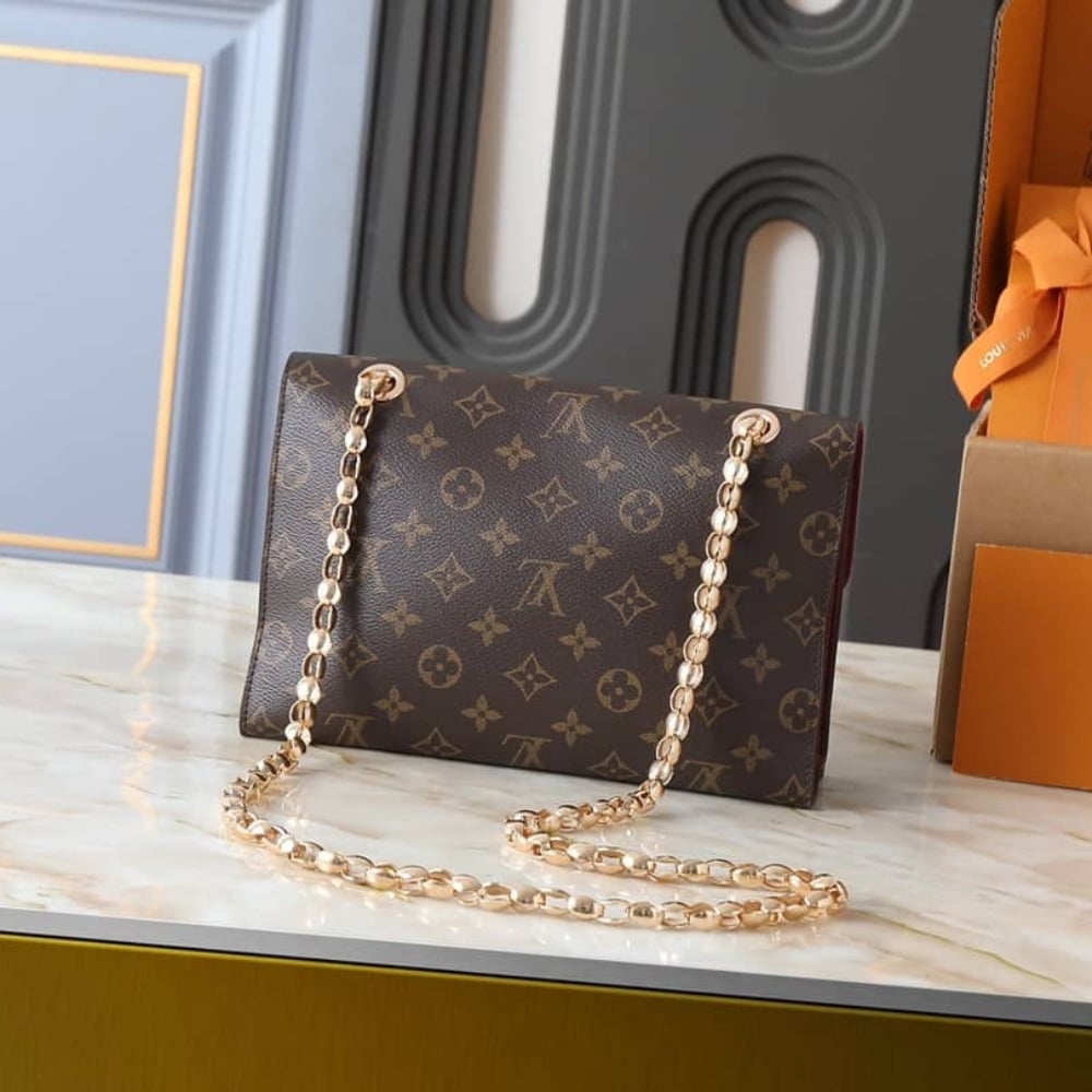 The Louis Vuitton Victoire in Monogram canvas is a sophisticated day-to-night bag that seamlessly blends archival House codes with modern flair. Its spacious interior is intelligently divided by a central zippered pocket, providing organized storage for all your daily essentials in one elegant package