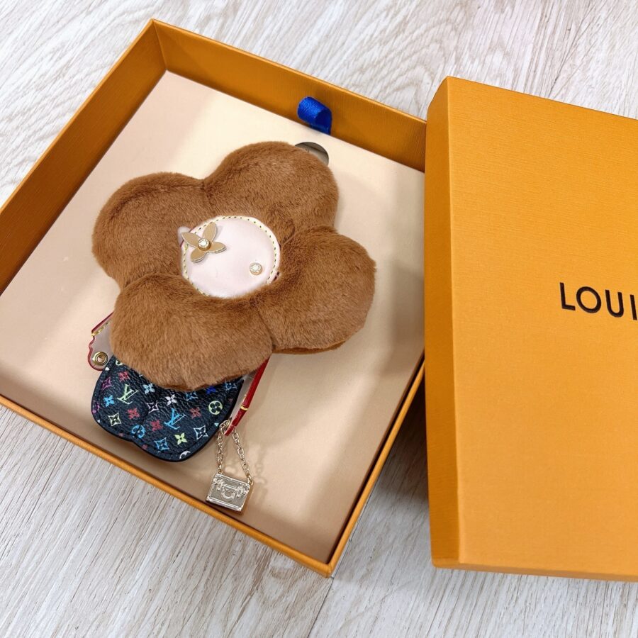 Louis Vuitton Vivienne Bag Charm / Vivienne character / Mink fur flower / Gold-tone metal / Bag Charms