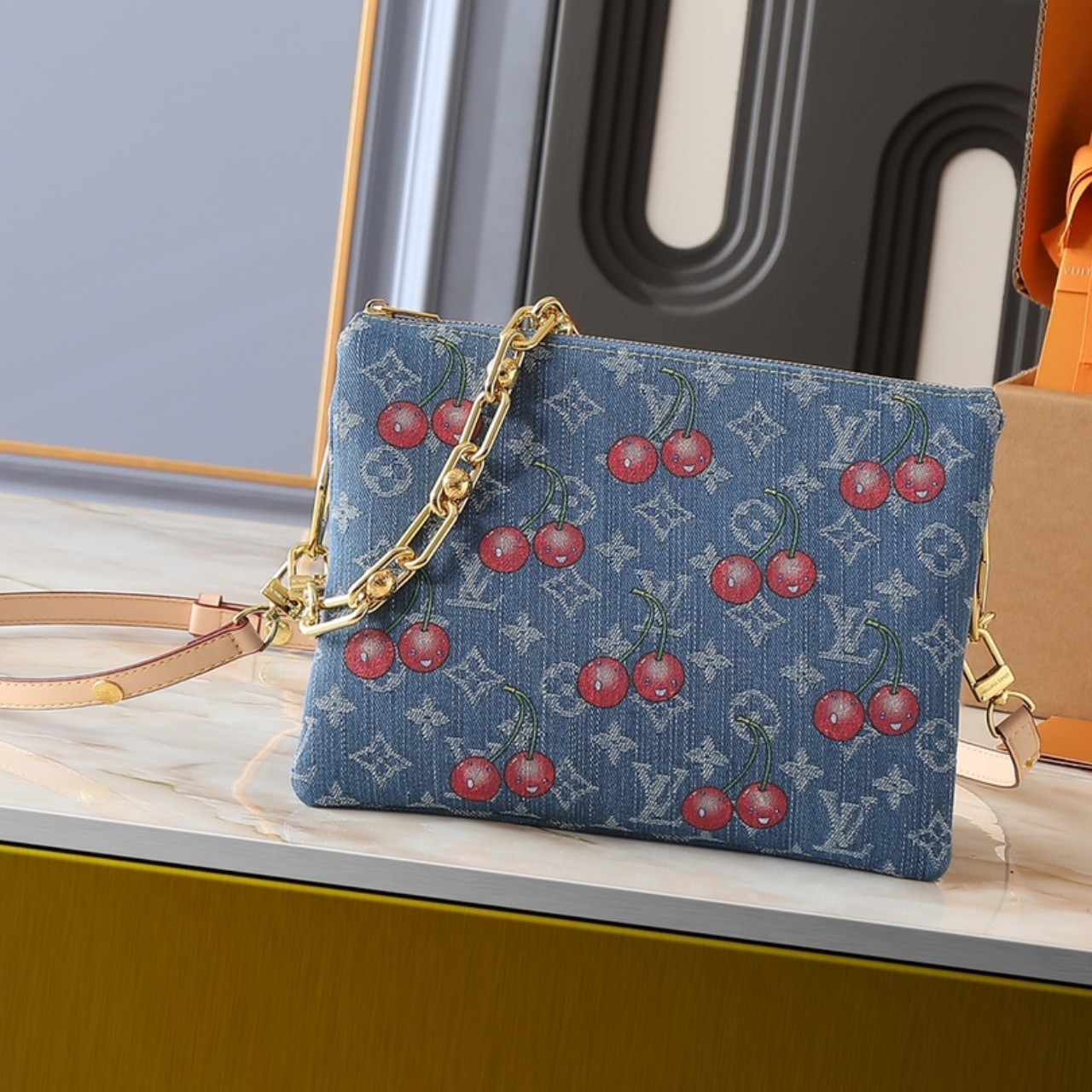 Louis Vuitton x Takashi Murakami PM Coussin Bag Denim Monogram Cherry Blue 26CM / 10.2 Inches