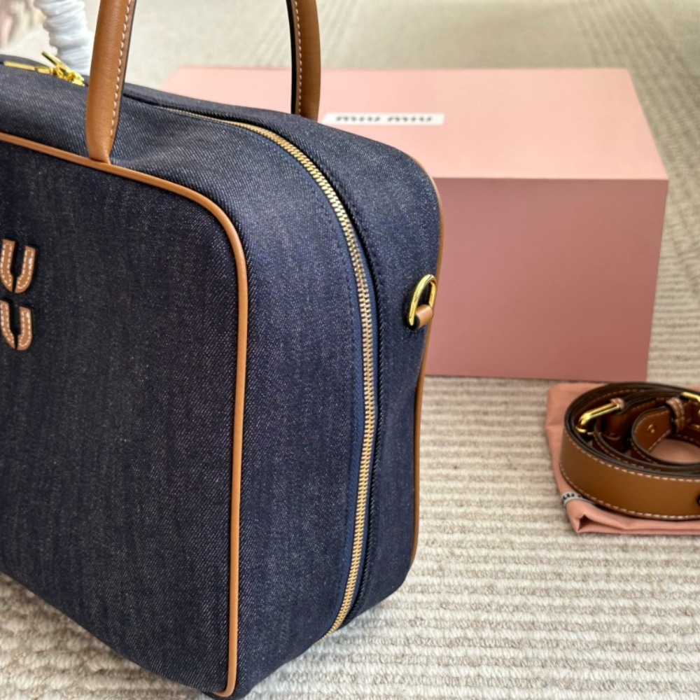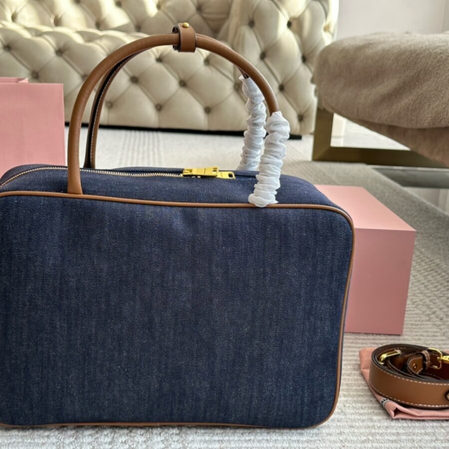MiuMiu Beau Denim Top Handle Bag Blue 35Cm