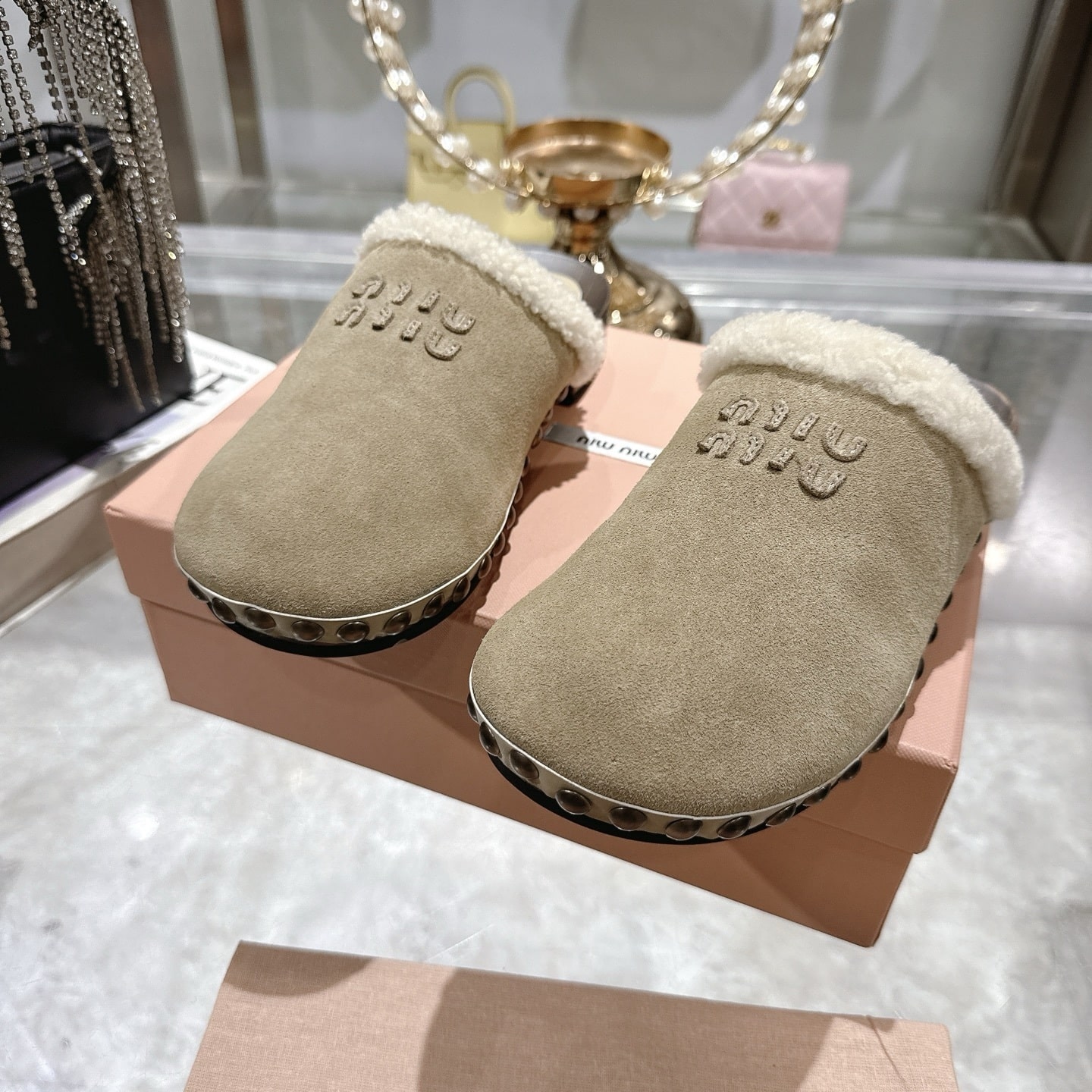 Categories: Fall-Winter 2025, Miumiu, Miumiu Shoes, Mules, New Arrivals, New products, Shoes, Suede Collection, Winter 2025