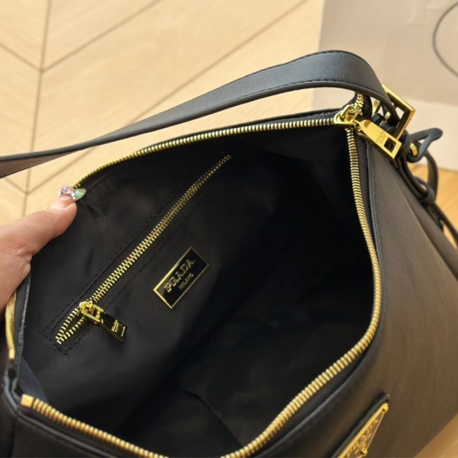 Prada Aimée Large Leather Shoulder Bag Black 1BC228 2CYS F0002 V LVM 39 cm / 15.4 inches