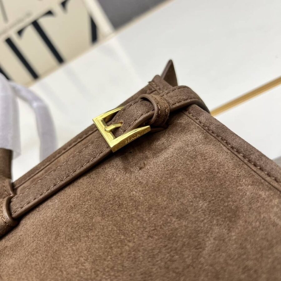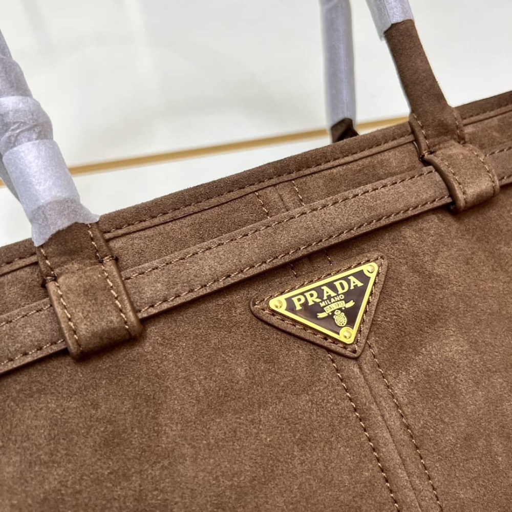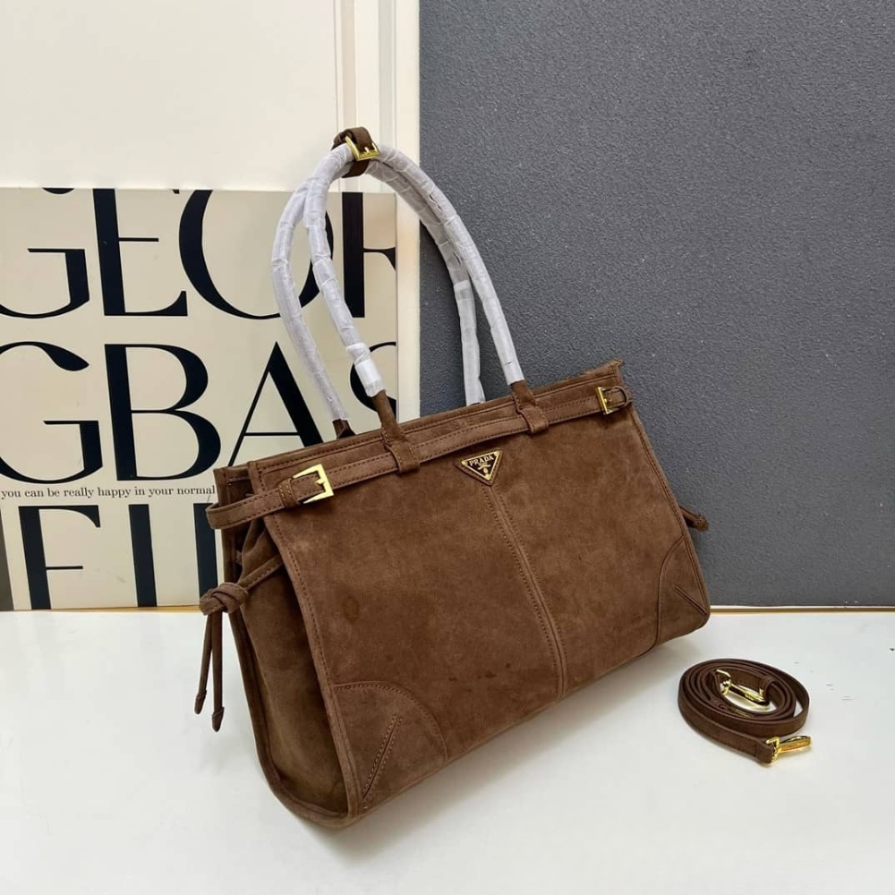 Prada Bonnie Large Suede Handbag Cacao Brown 38Cm 1Ba433 2C4S F0324 V Moo
