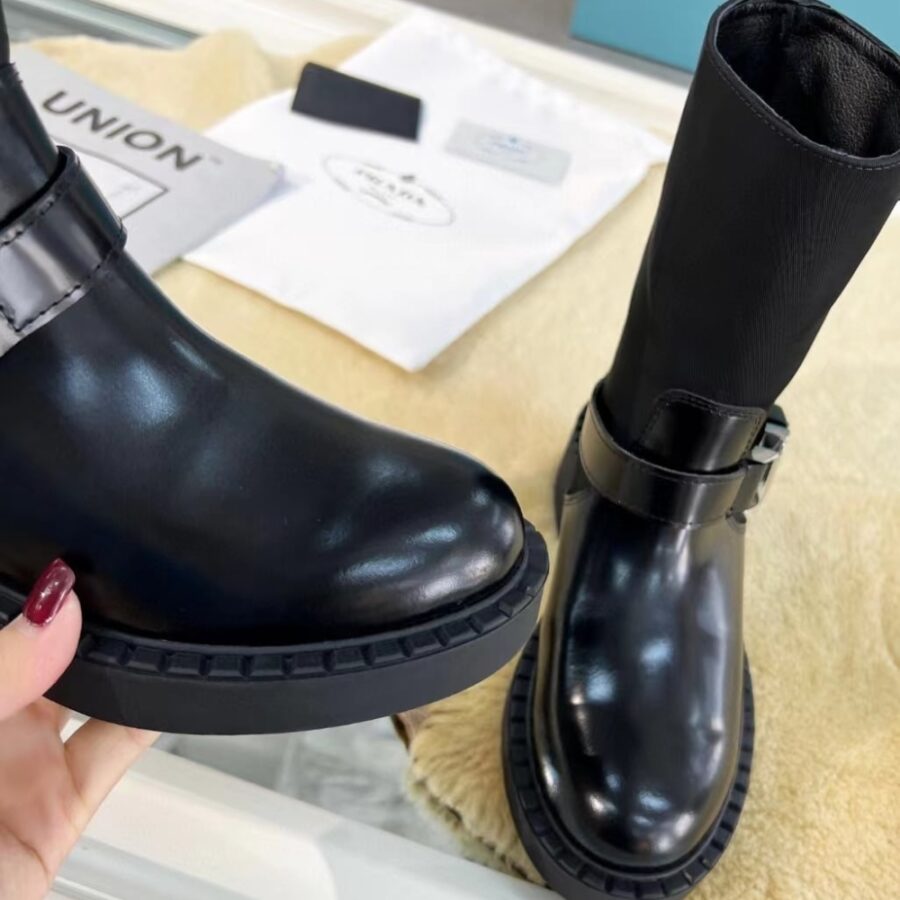 PRADA BRUSHED LEATHER AND RE NYLON BOOTS BLACK 1U682M 3LF7 F0002 F B050