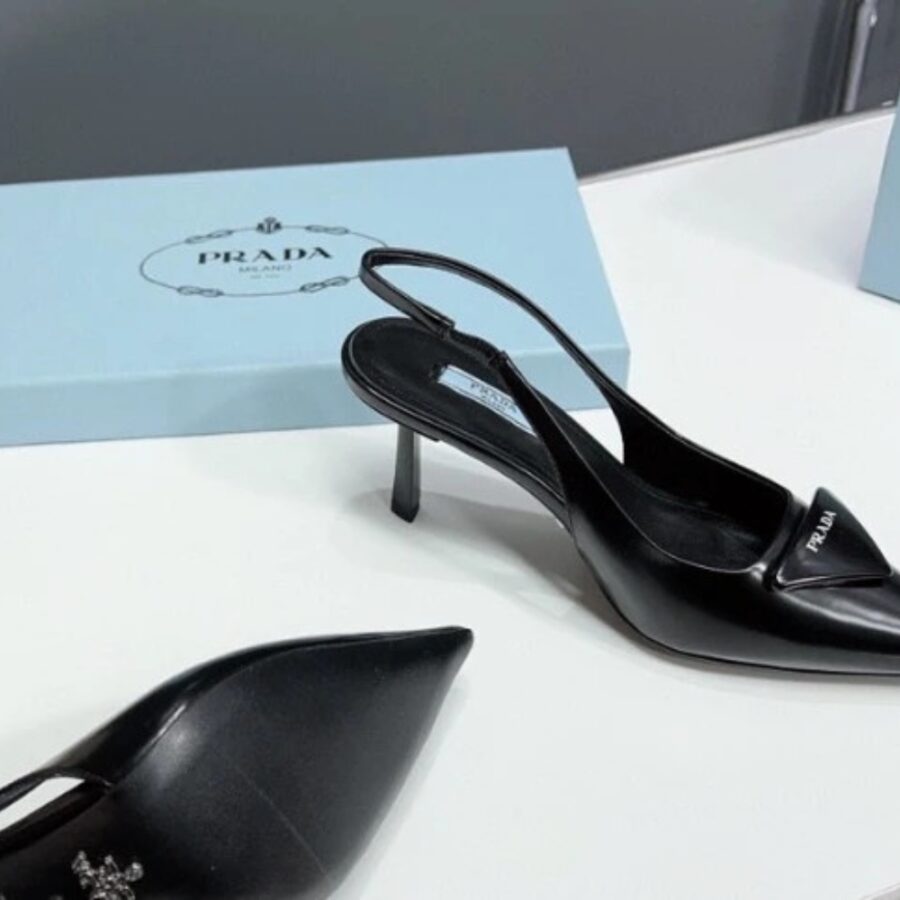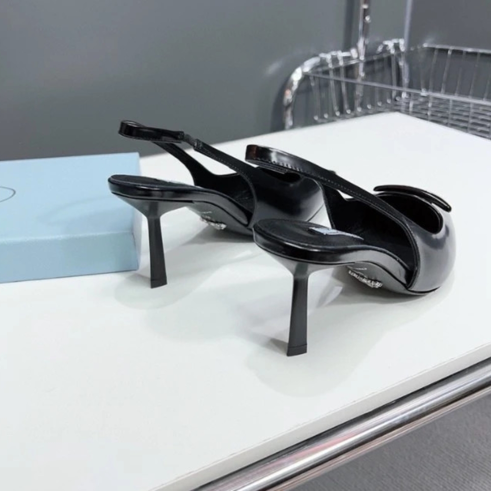 These pumps expressing sophisticated, feminine elegance are made of brushed leather, an emblematic material of Prada since the 90s traditionally used for luxury footwear. The triangle logo returns as a slightly padded leather detail and inspires the geometric line of the heel, which gives the silhouette a modernist note.