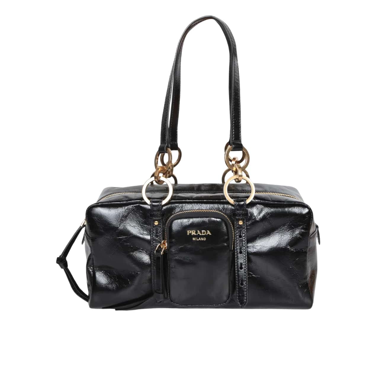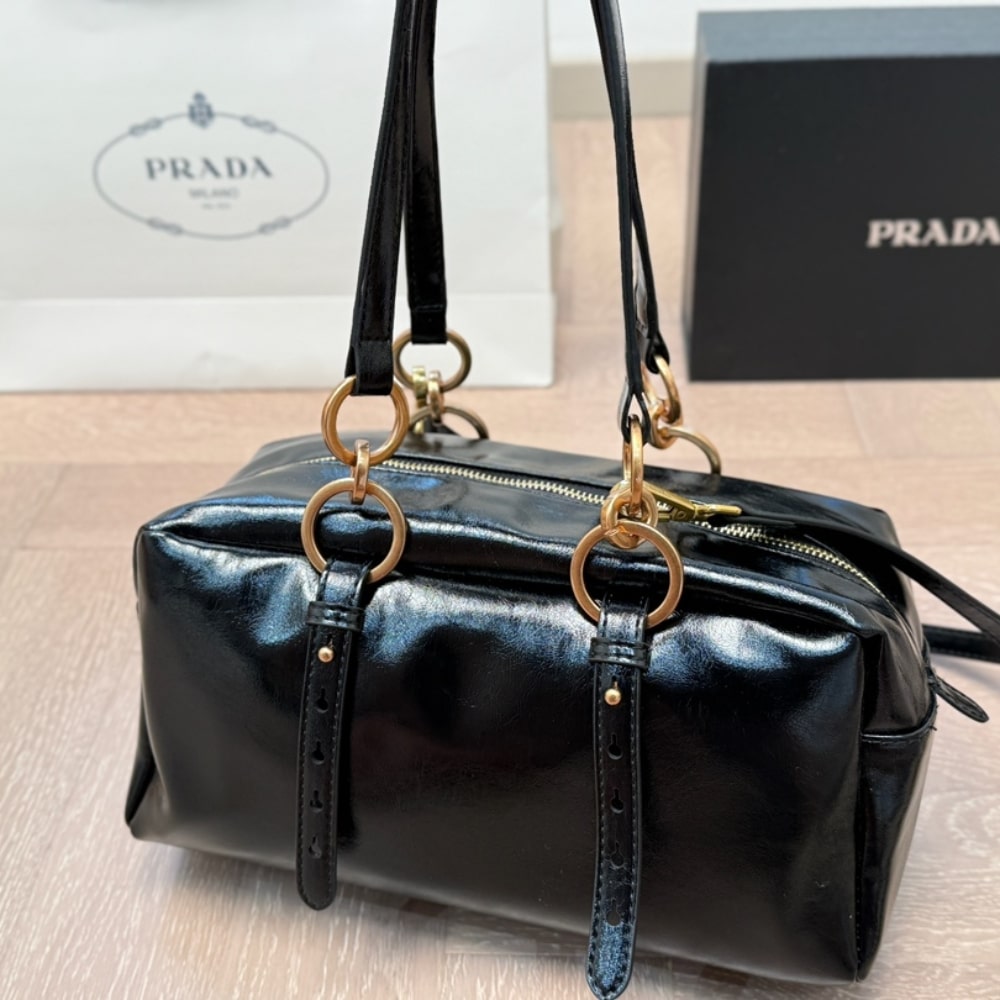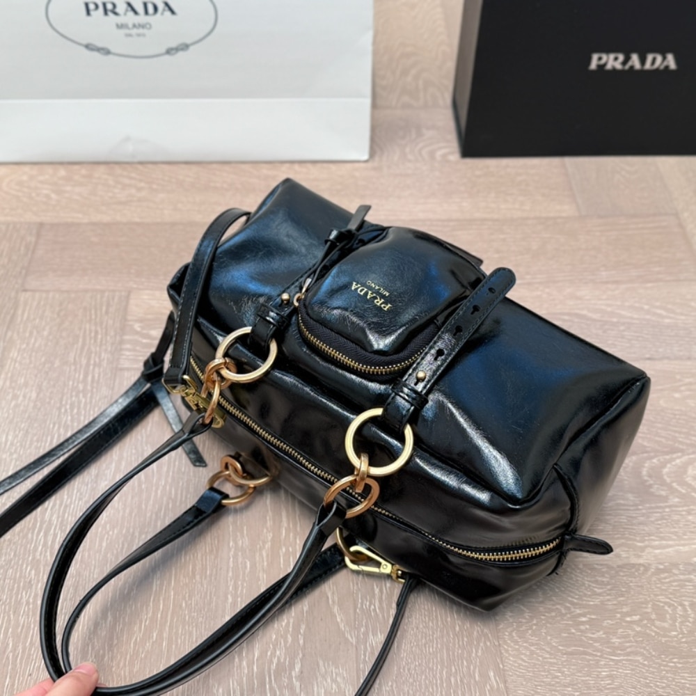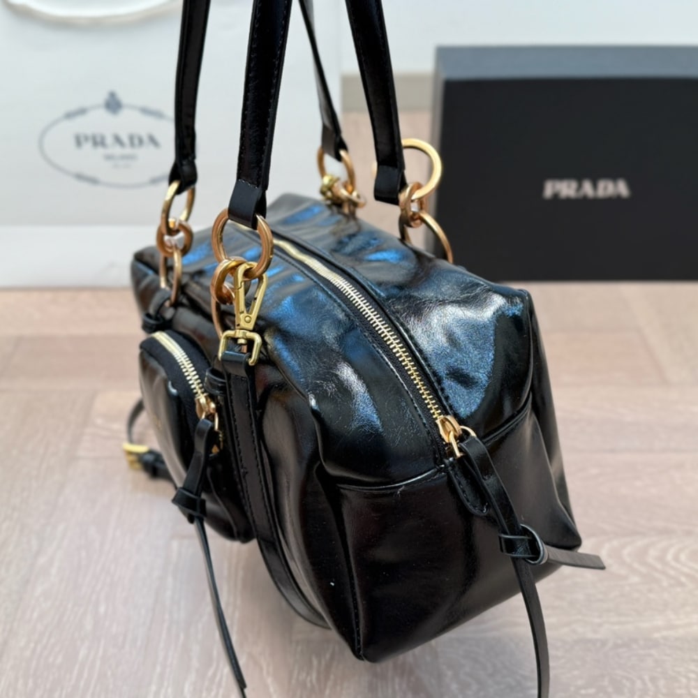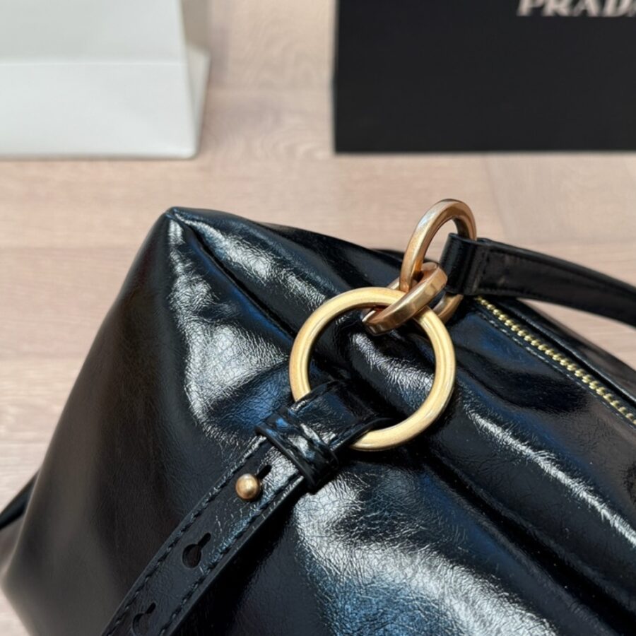 Prada Dangle Medium Leather Top Handle Bag Black 29Cm 1BB138 2CYR F0002 V OOO
