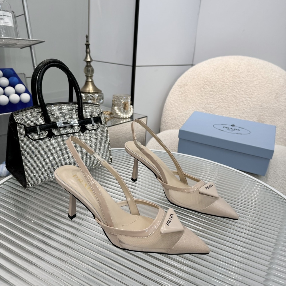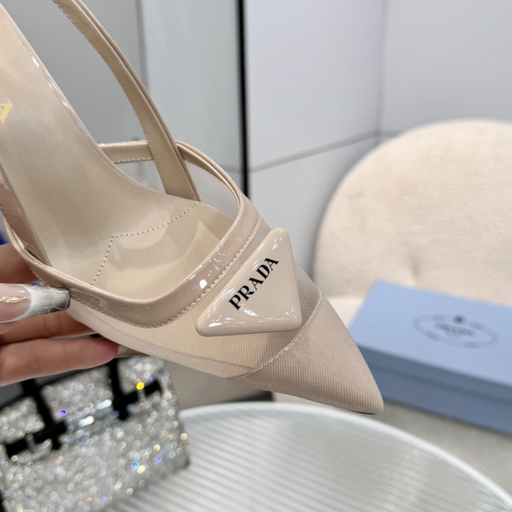Prada Mesh Fabric Slingback Pumps Travertine Stone 1I891N 099 F0485 F 075