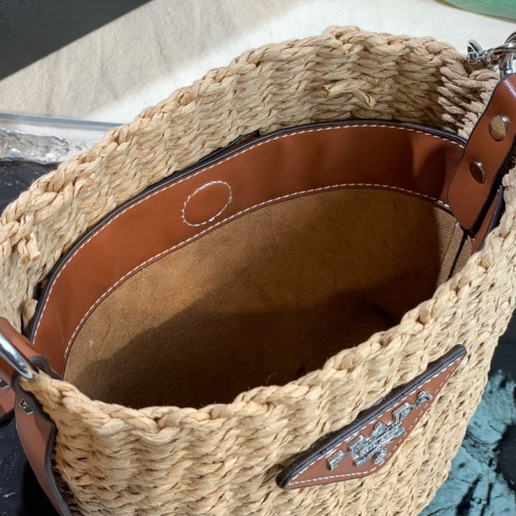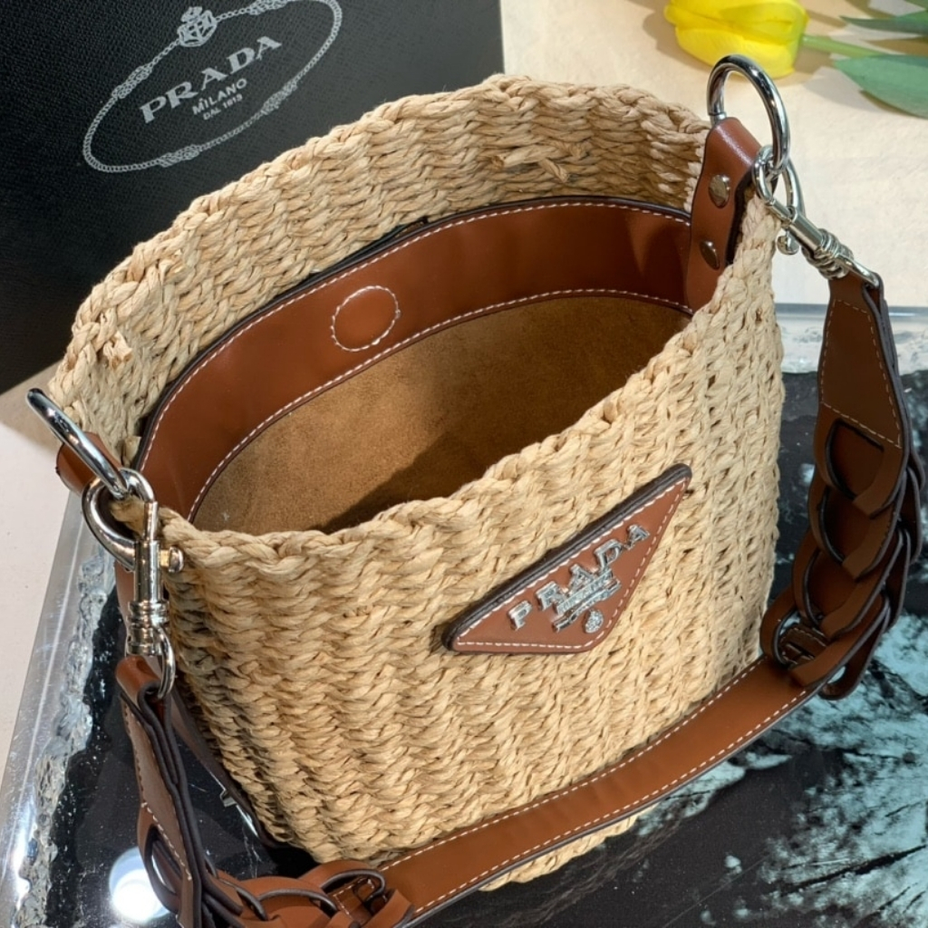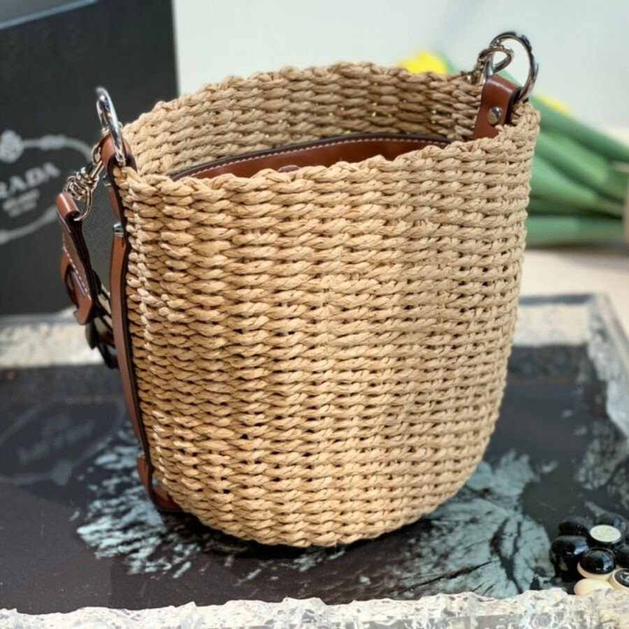 1:1 Replica Bag – Prada Raffia Woven Bucket Bag Natural 21cm