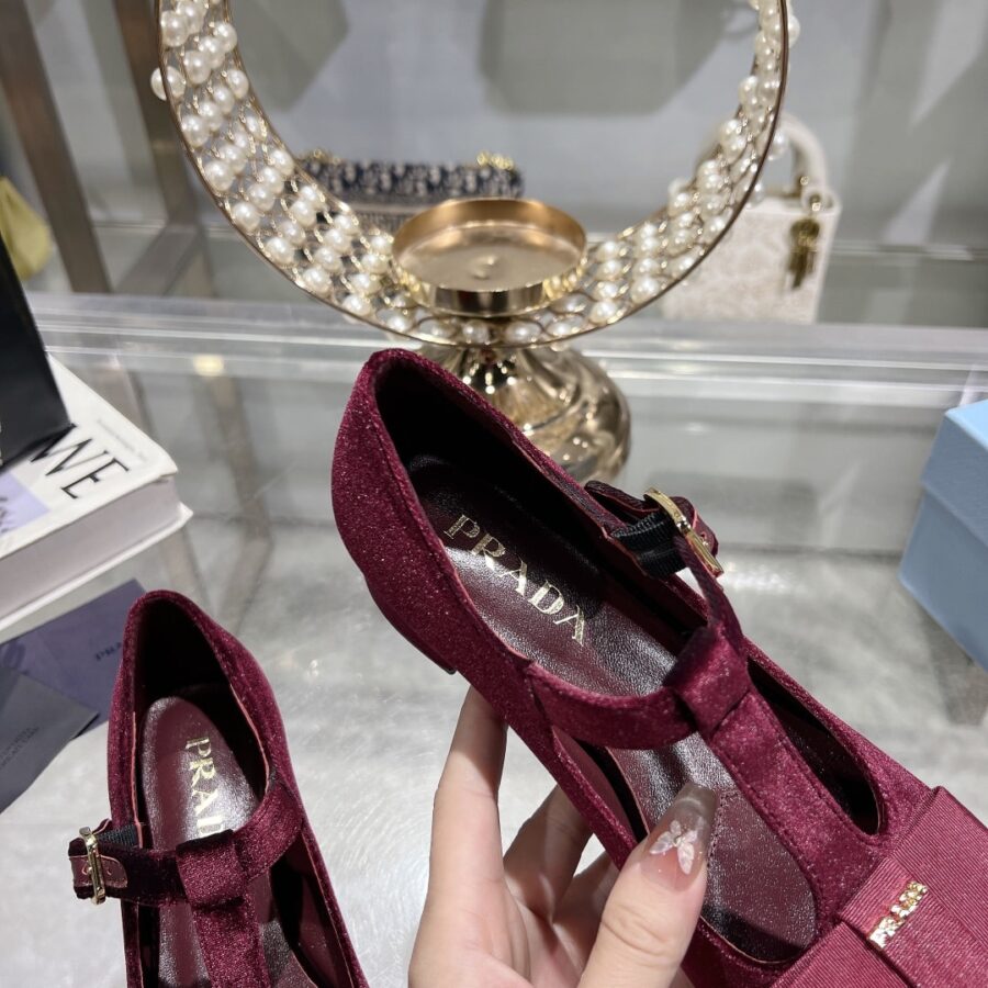 - Upper with grosgrain bow and metal buckle