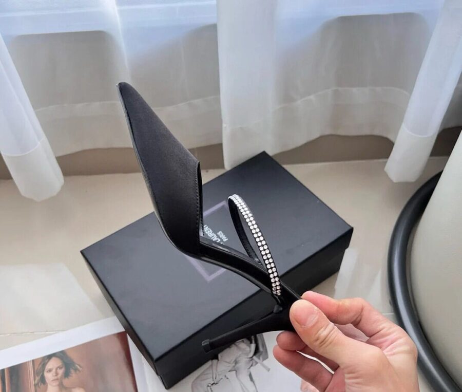 SAINT LAURENT BARBARA MULES SATIN AND RHINESTONES IN BLACK 7997159QN0A1021