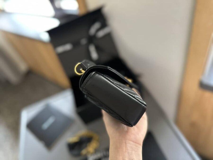 Saint Laurent College Mini Chain Bag In Shiny Crackled Leather Black 779430DZH071000 / 20 cm / 7.9 inches