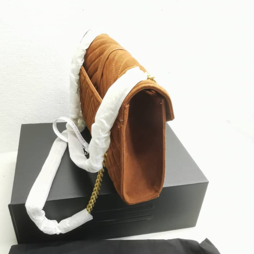 Saint Laurent //Envelope Medium Matelassé Suede Shoulder Bag //Brown //24cm