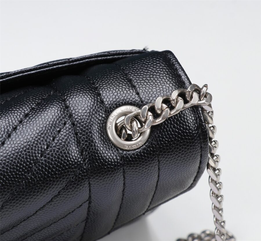 Saint Laurent Envelope Small In Quilted Grain De Poudre Embossed Leather Black Silver 21cm 600195BOW921000
