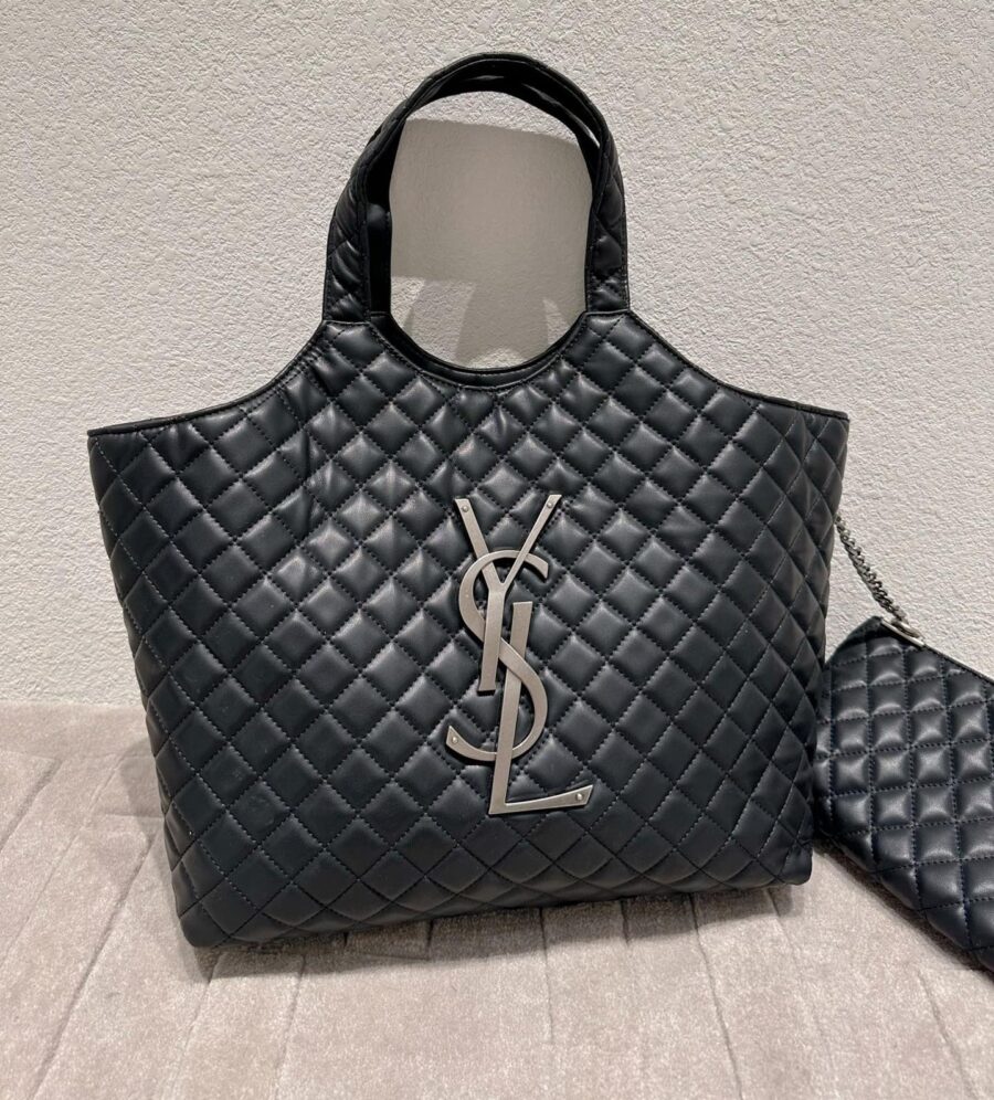 Saint Laurent Icare Shopping Bag In Quilted / Black Silver 40Cm