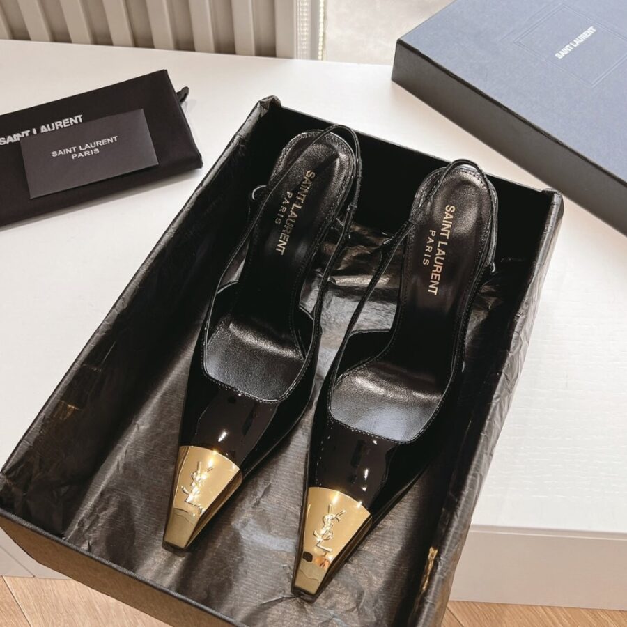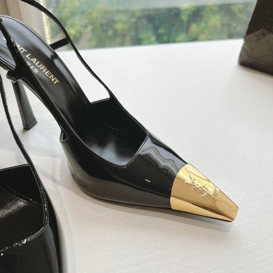 SAINT LAURENT JEANNE SLINGBACK PUMPS BLACK AND GOLD 800164AADX21000