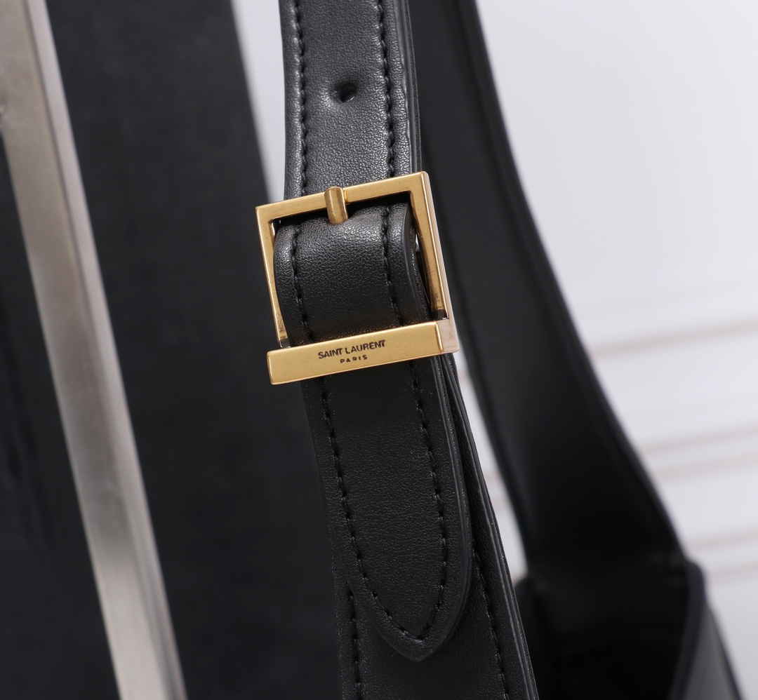 SAINT LAURENT LE 5 À 7 HOBO BAG IN SMOOTH LEATHER BLACK GOLD 23CM 6572282R20W1000