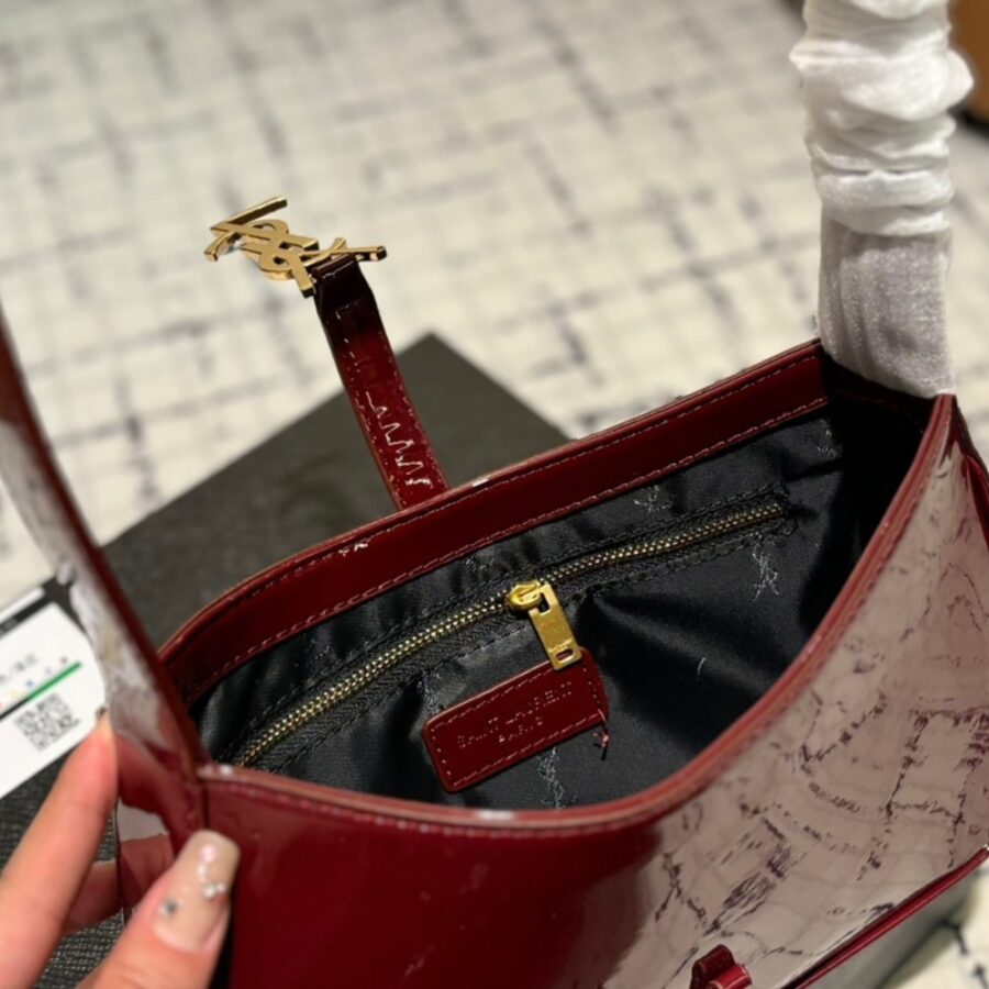 SAINT LAURENT LE 5 A 7 PATENT HOBO BAG IN SHINY LEATHER WINE RED 25CM